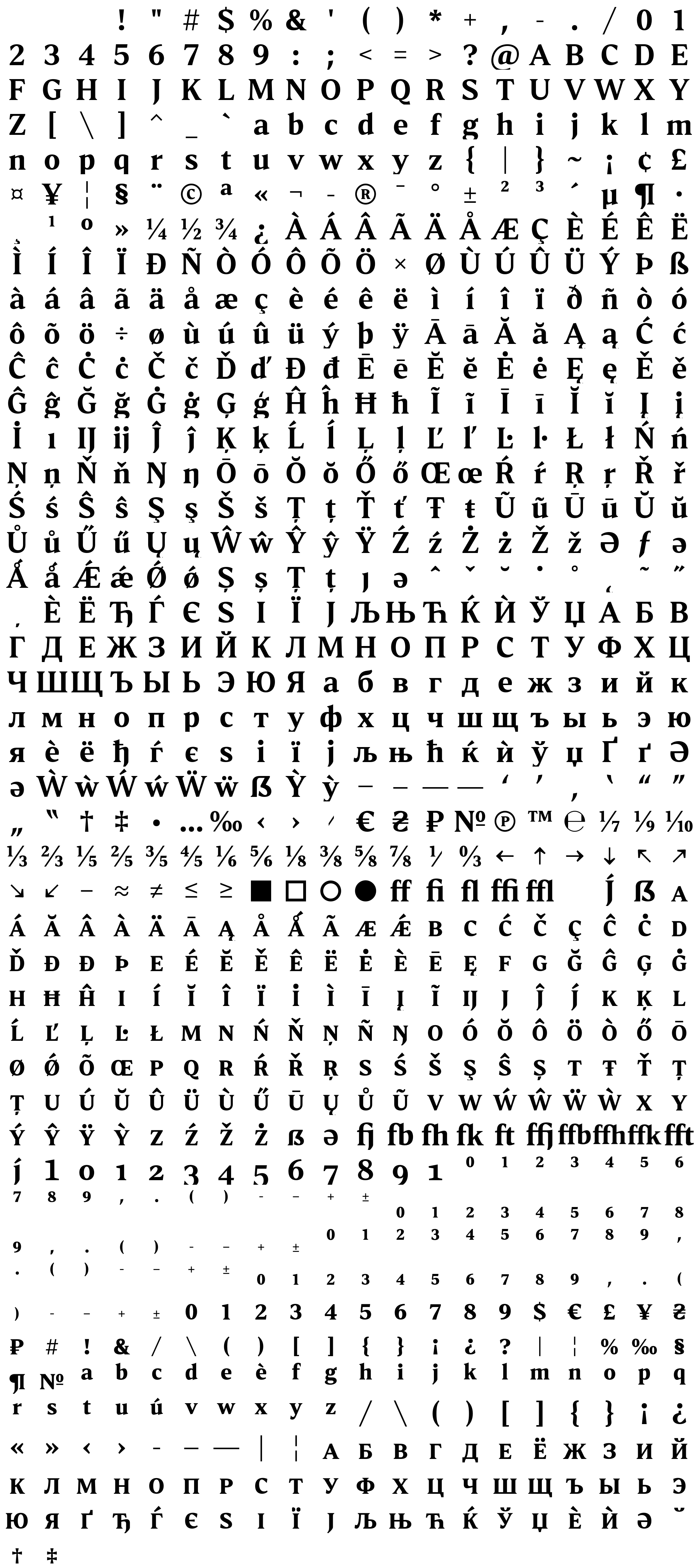 Due to the nature of thumbs' generation process, some of the glyphs in the glyph map may appear cropped.