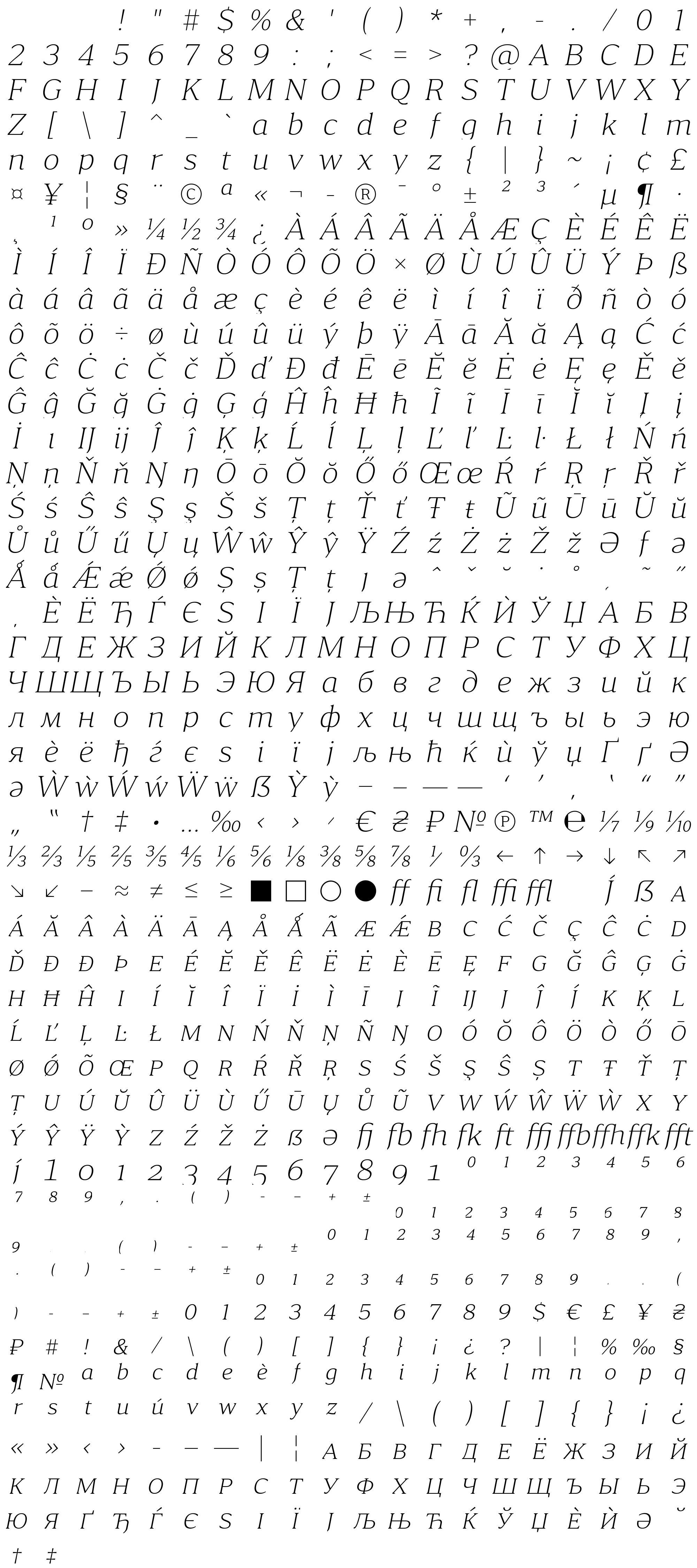 Due to the nature of thumbs' generation process, some of the glyphs in the glyph map may appear cropped.