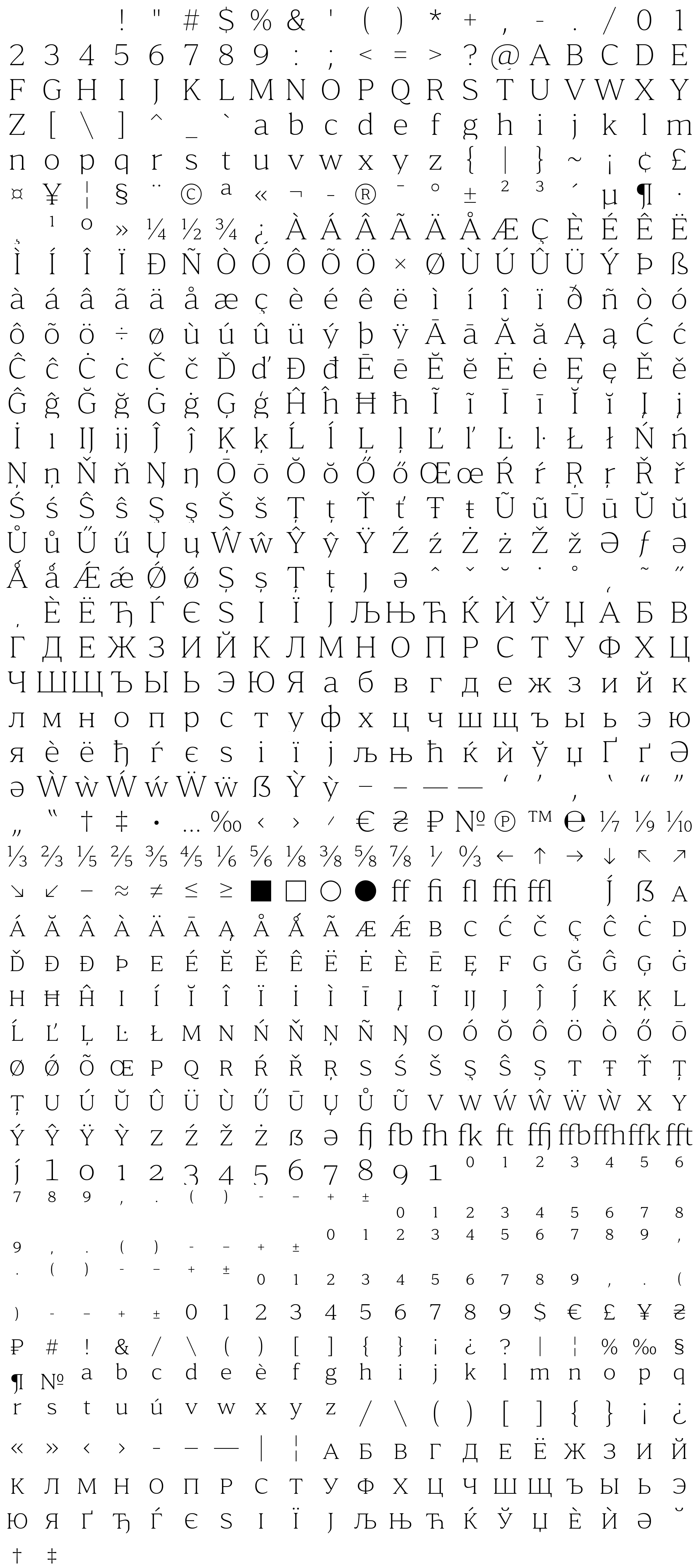 Due to the nature of thumbs' generation process, some of the glyphs in the glyph map may appear cropped.