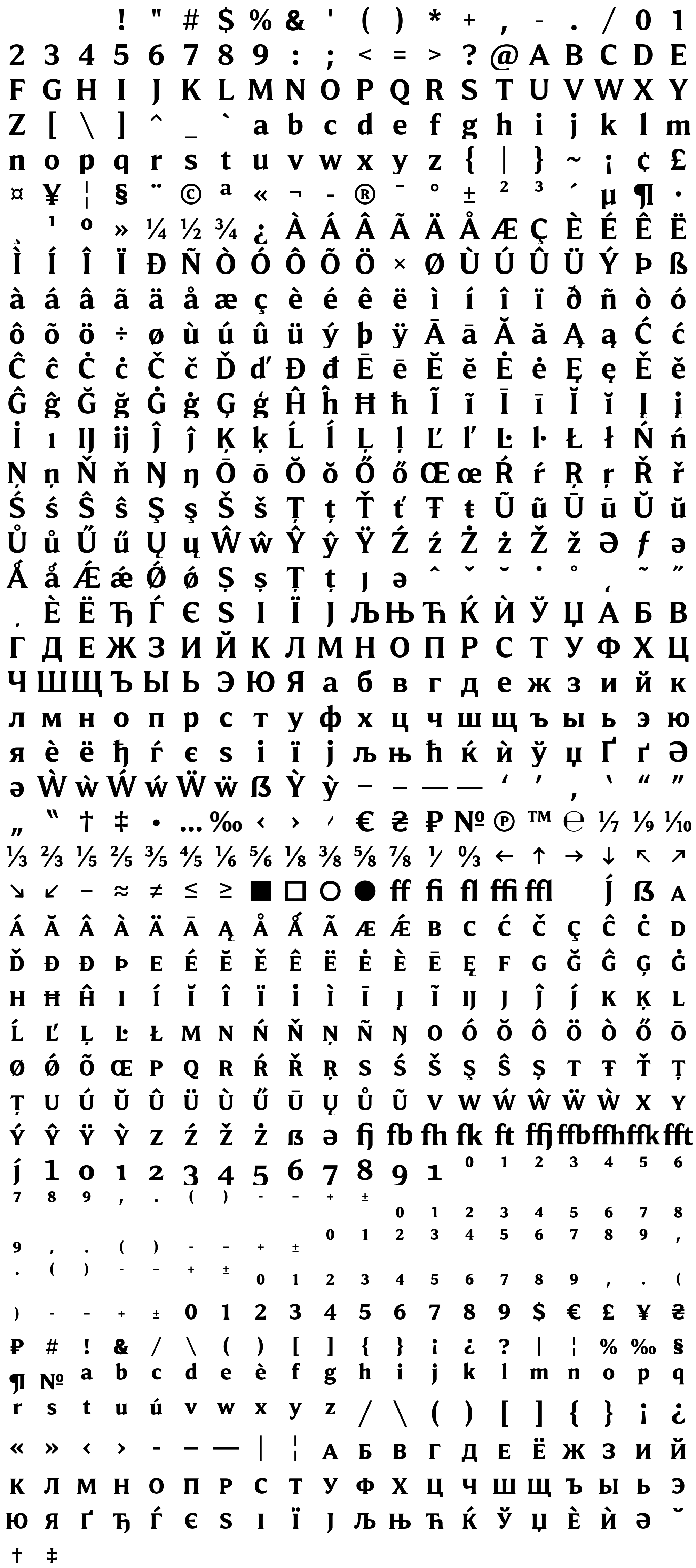 Due to the nature of thumbs' generation process, some of the glyphs in the glyph map may appear cropped.