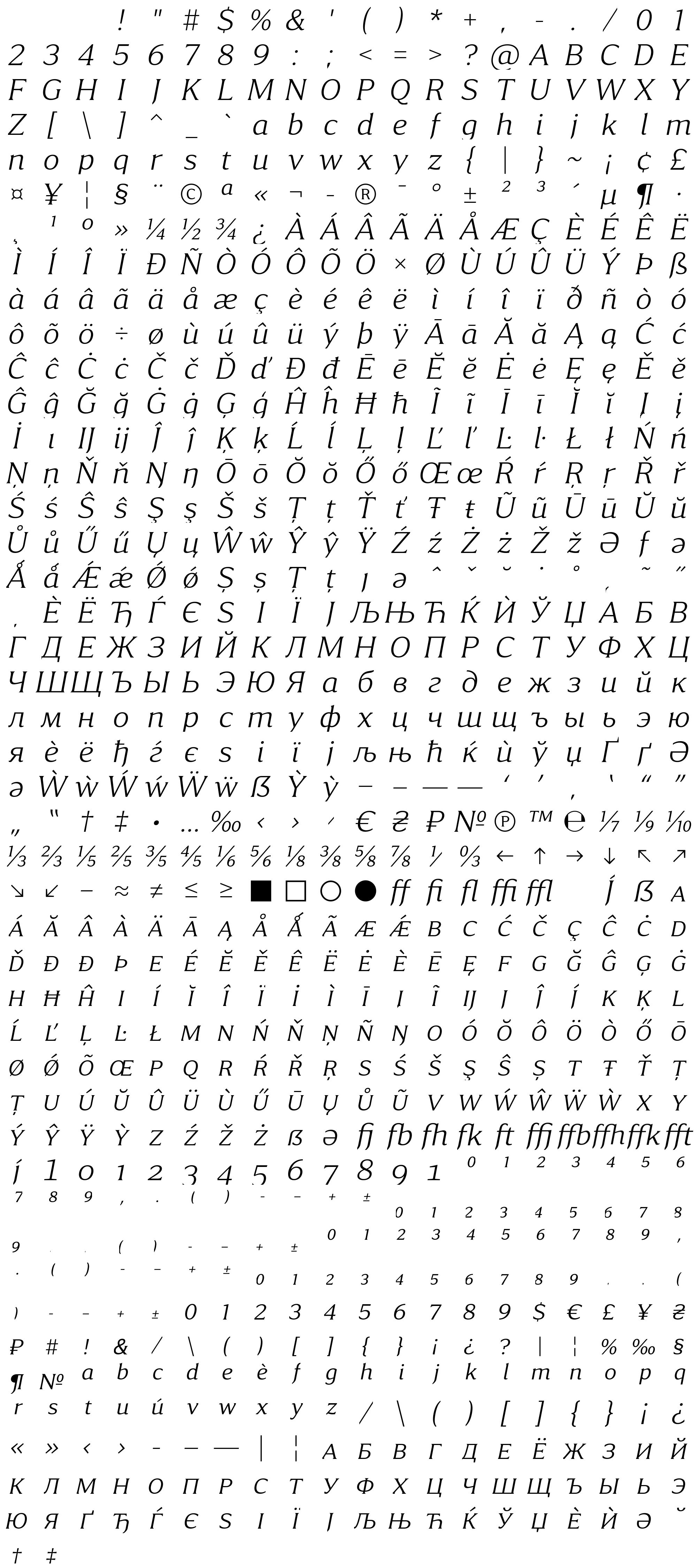 Due to the nature of thumbs' generation process, some of the glyphs in the glyph map may appear cropped.