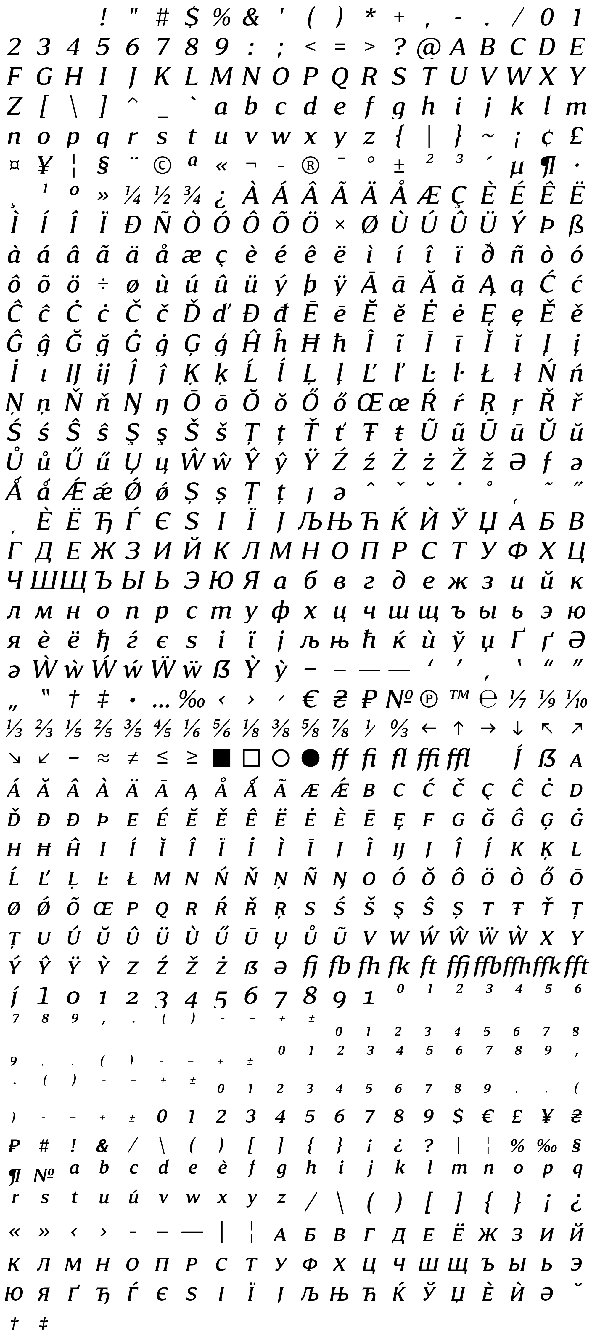 Due to the nature of thumbs' generation process, some of the glyphs in the glyph map may appear cropped.