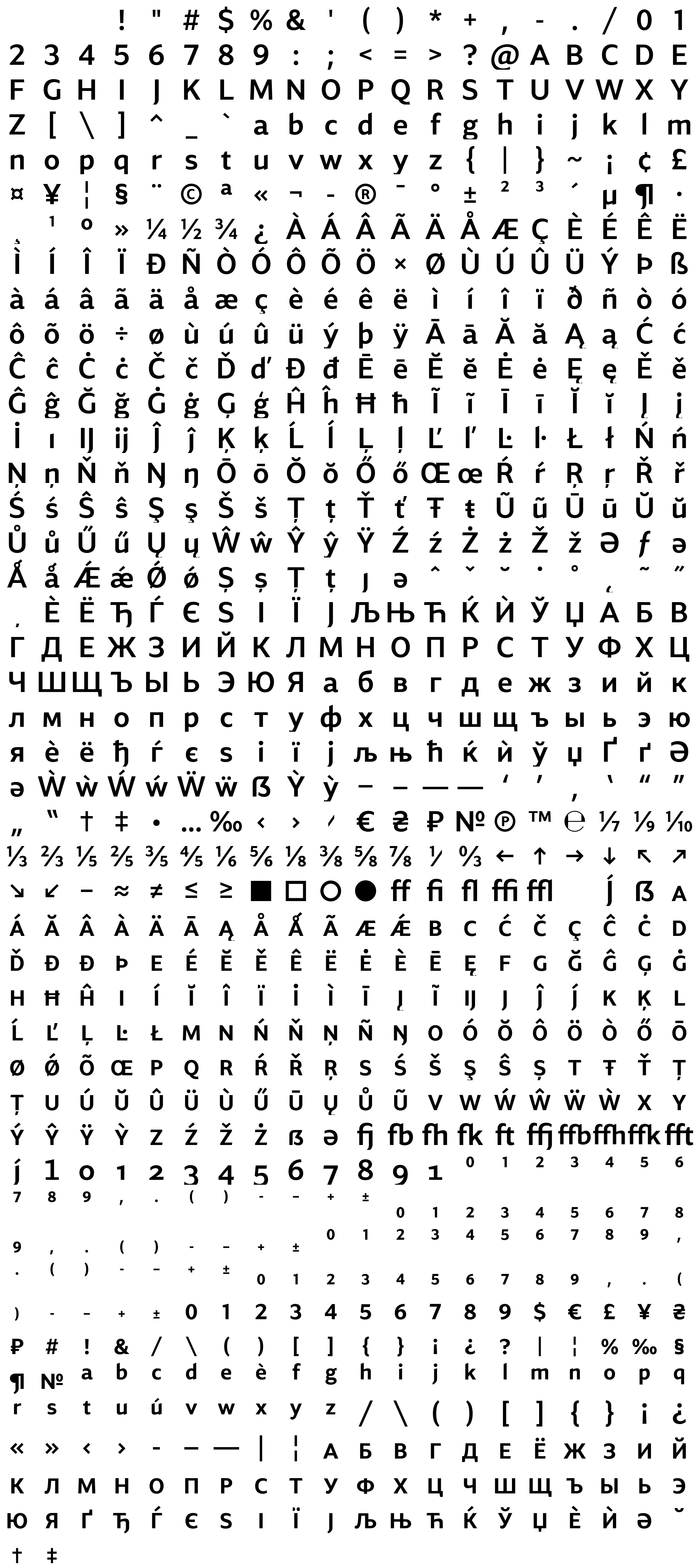Due to the nature of thumbs' generation process, some of the glyphs in the glyph map may appear cropped.