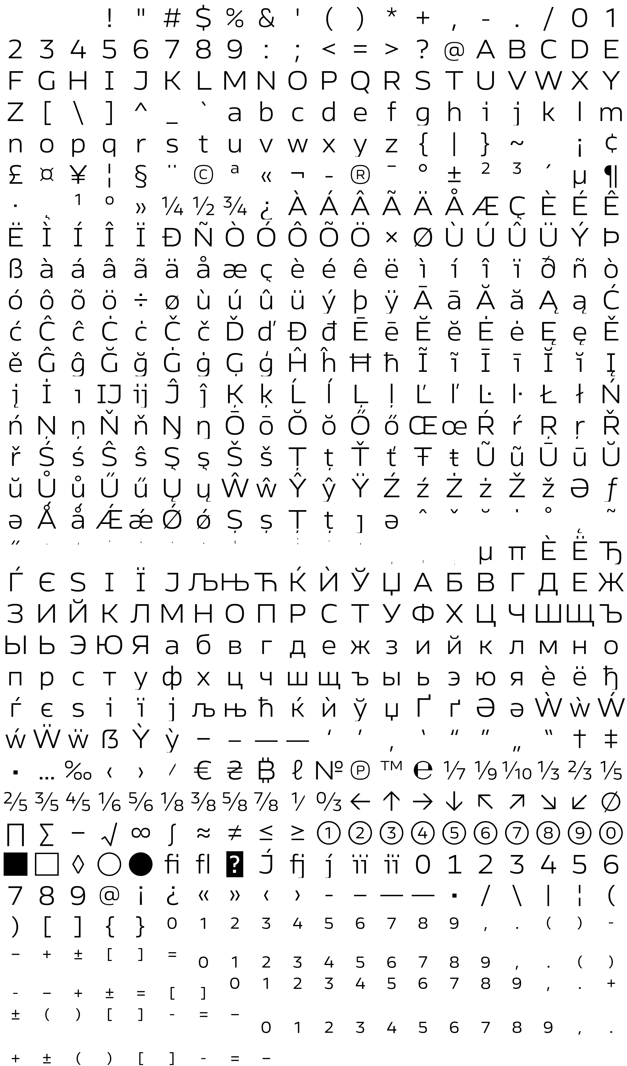 Due to the nature of thumbs' generation process, some of the glyphs in the glyph map may appear cropped.