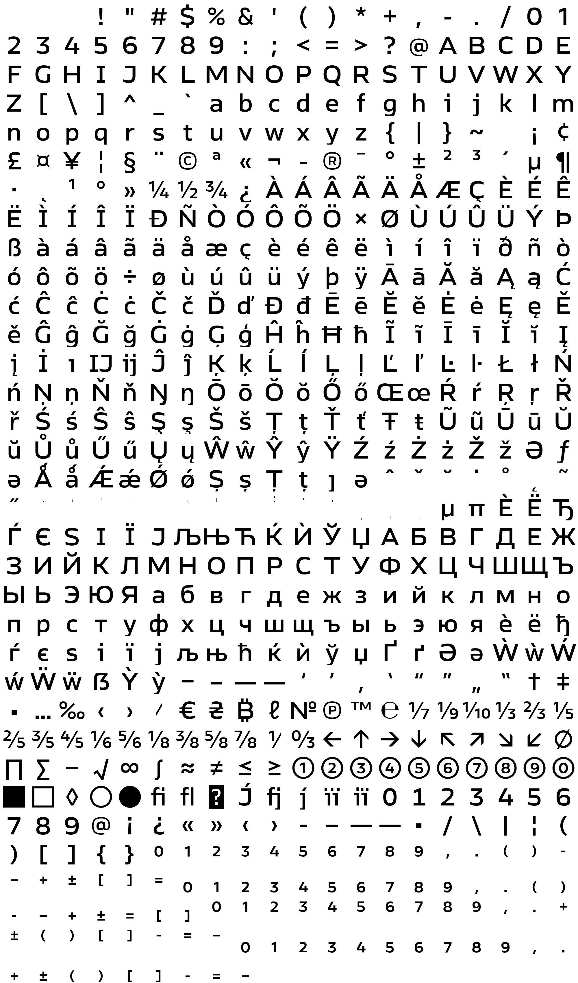 Due to the nature of thumbs' generation process, some of the glyphs in the glyph map may appear cropped.