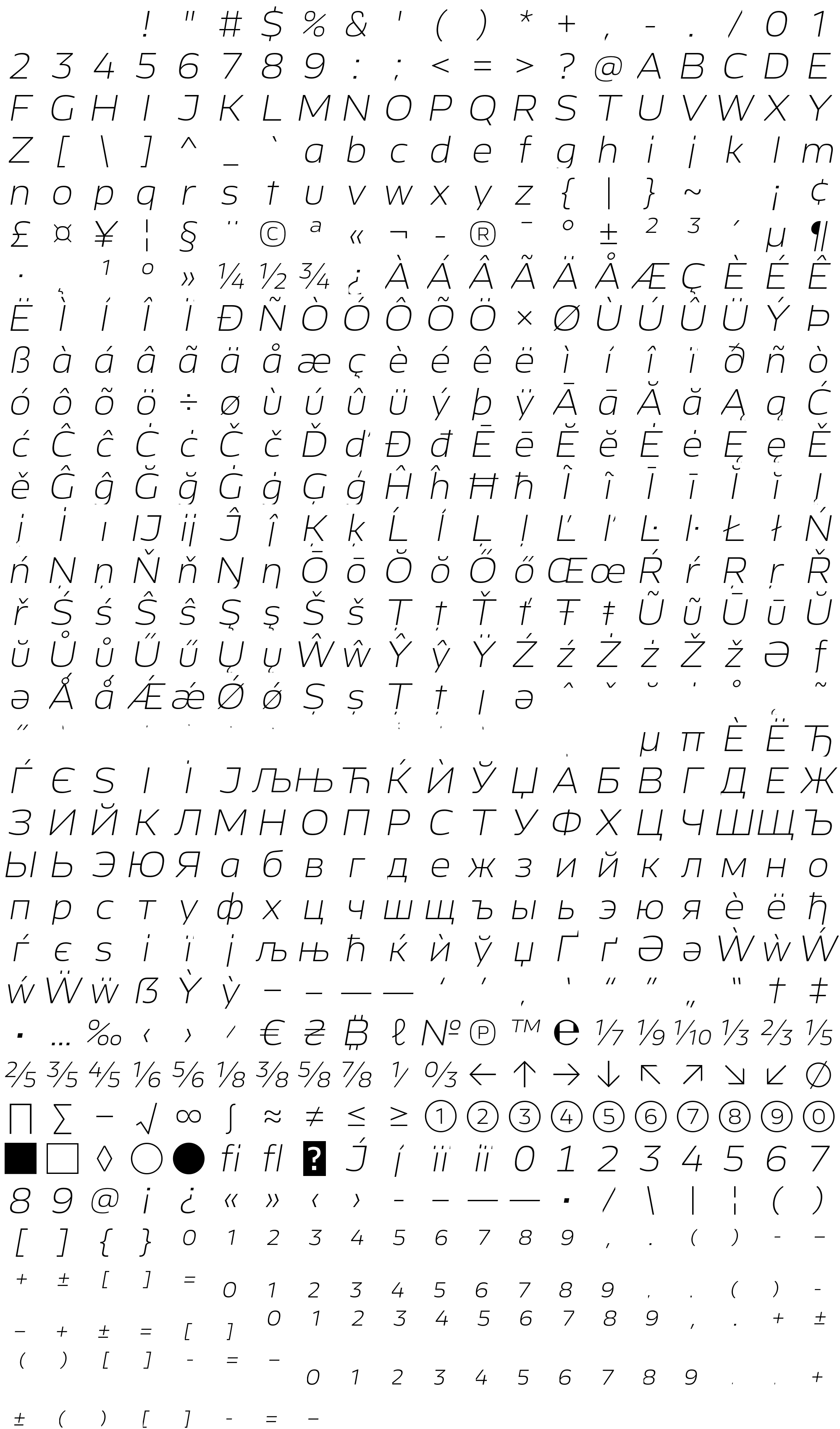 Due to the nature of thumbs' generation process, some of the glyphs in the glyph map may appear cropped.