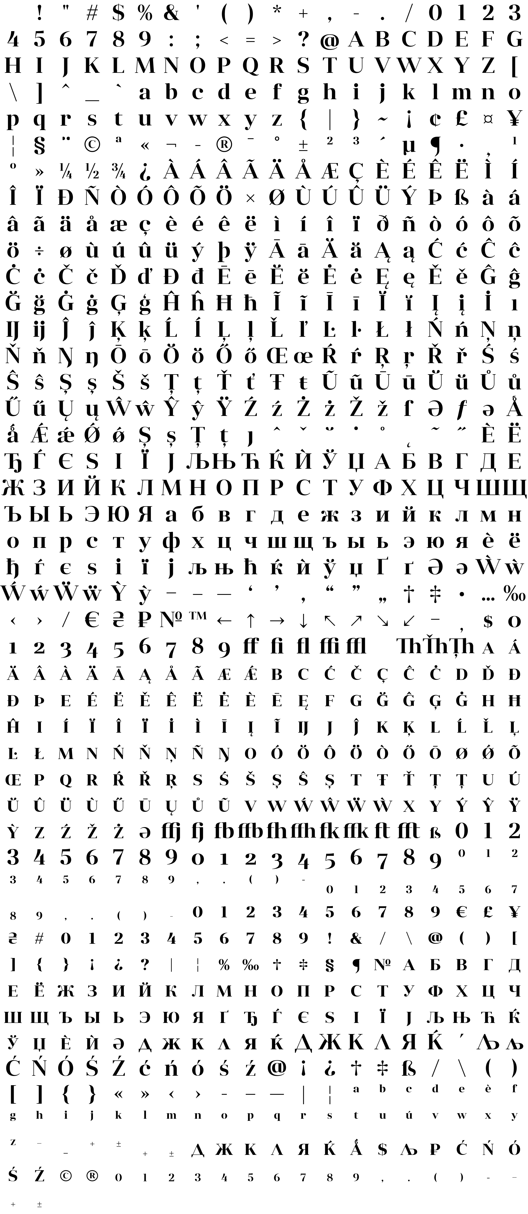 Due to the nature of thumbs' generation process, some of the glyphs in the glyph map may appear cropped.