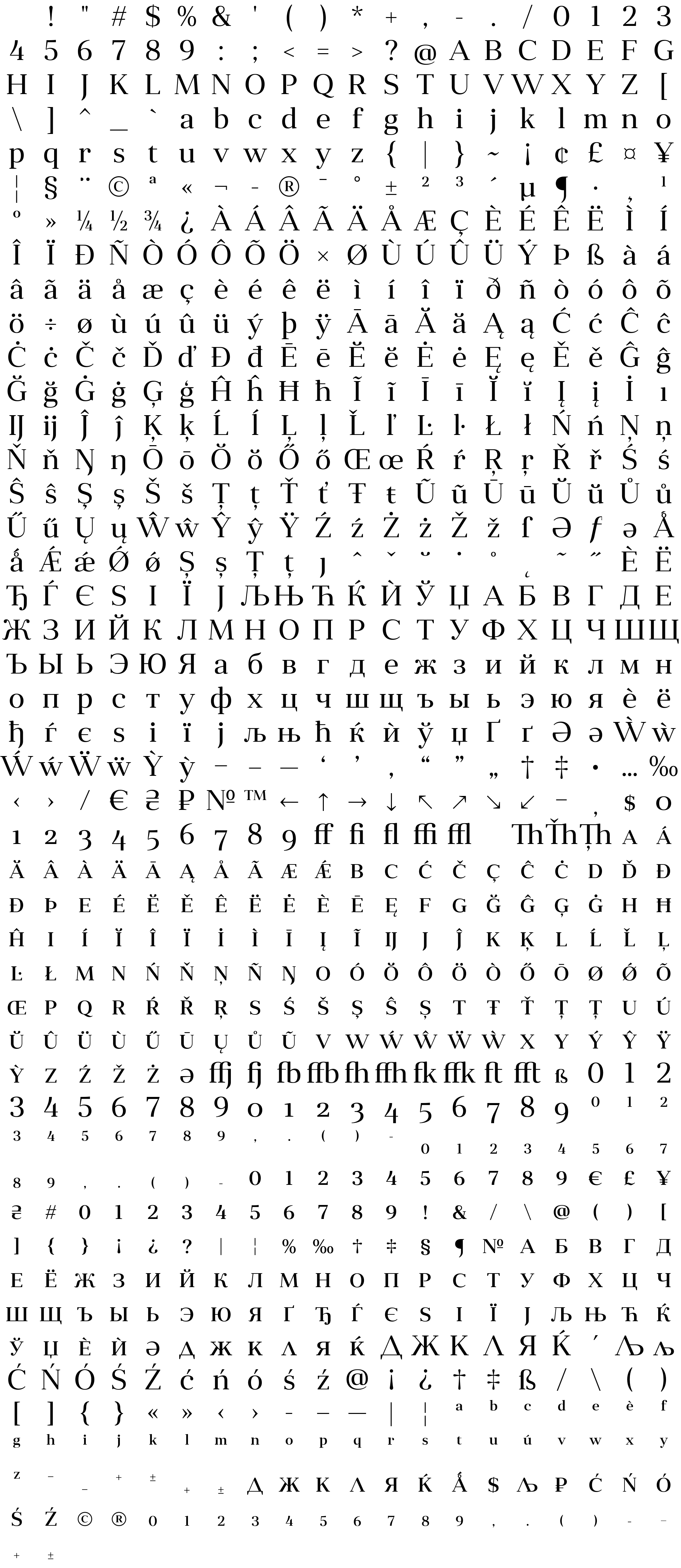 Due to the nature of thumbs' generation process, some of the glyphs in the glyph map may appear cropped.