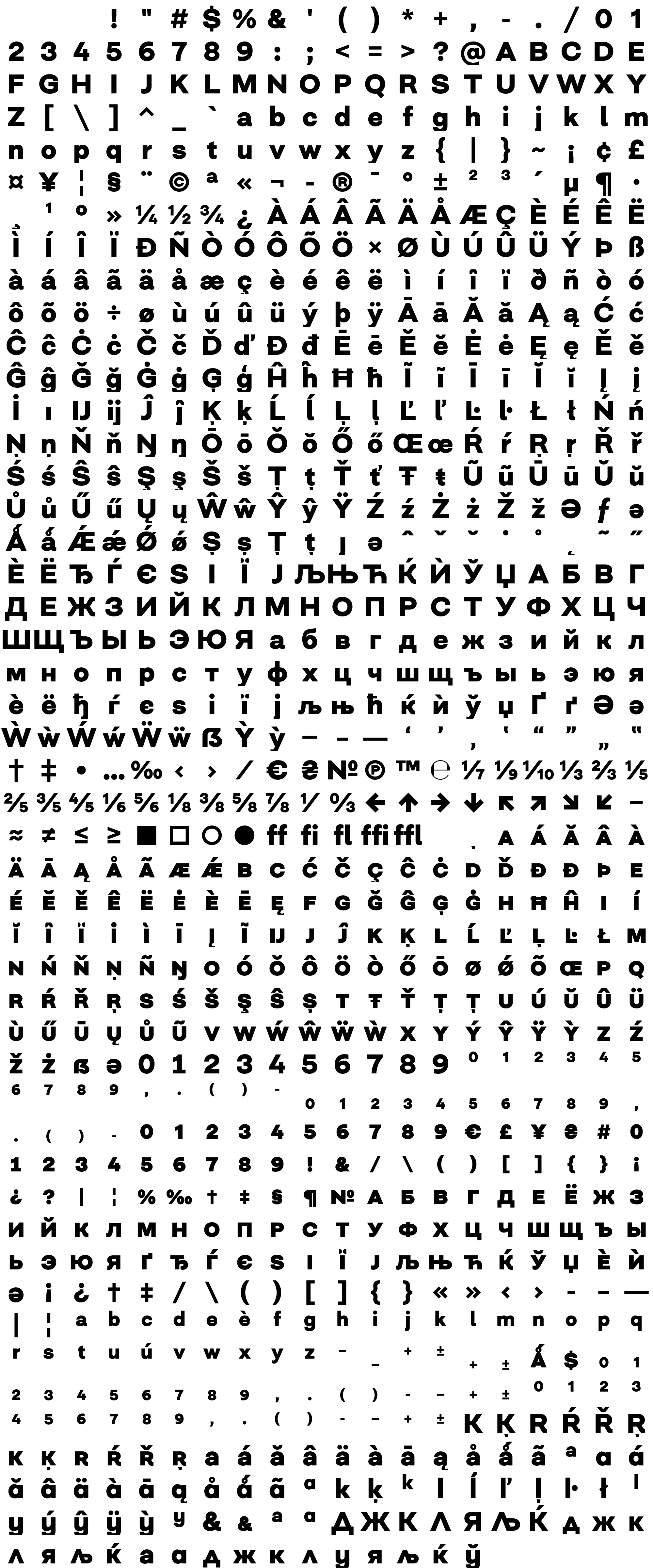 Due to the nature of thumbs' generation process, some of the glyphs in the glyph map may appear cropped.