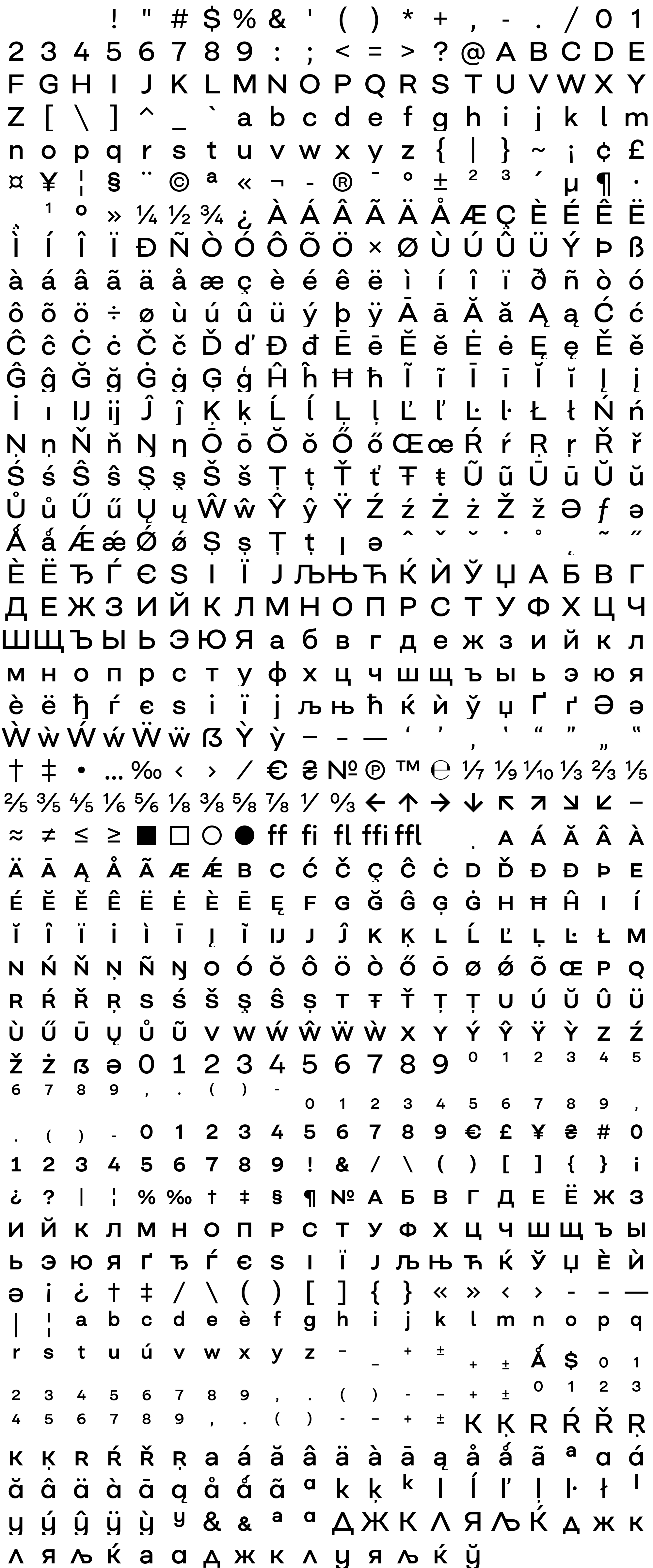 Due to the nature of thumbs' generation process, some of the glyphs in the glyph map may appear cropped.