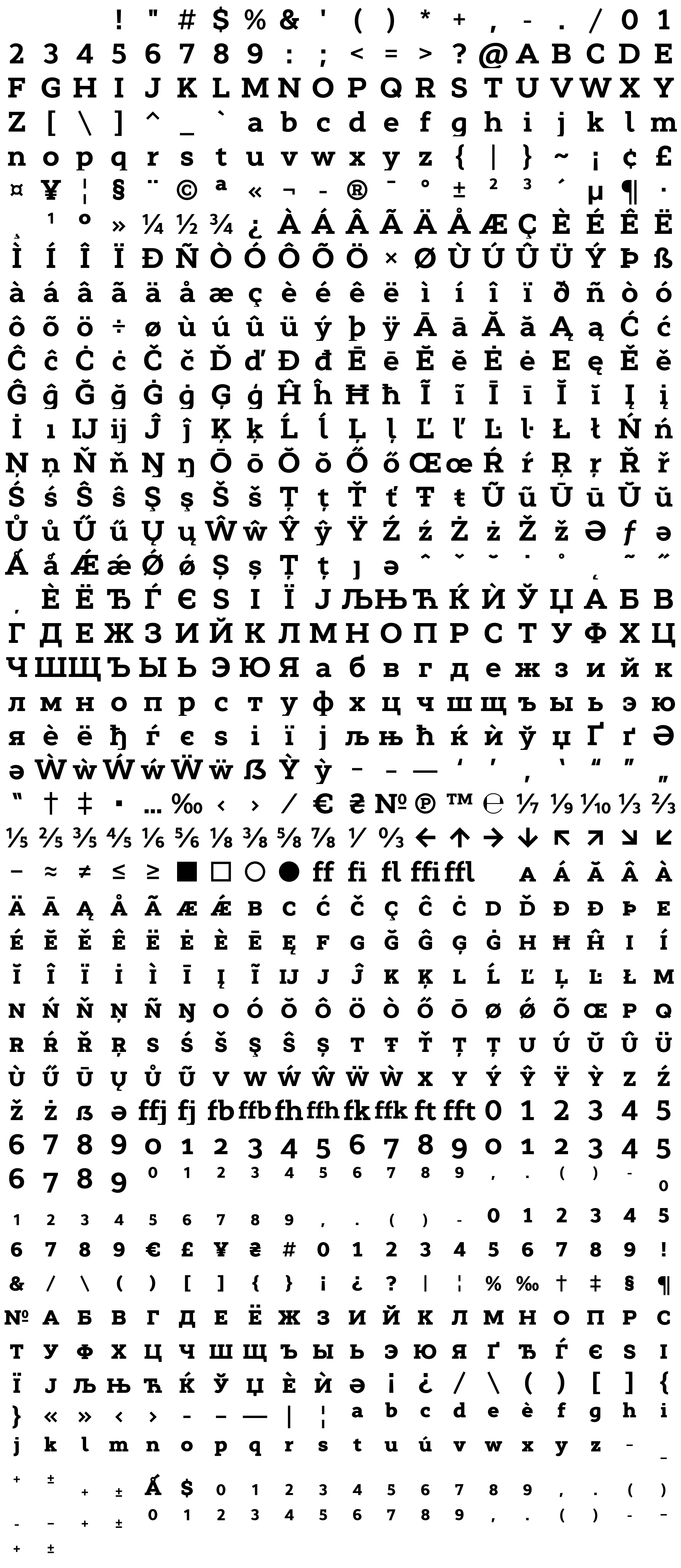Due to the nature of thumbs' generation process, some of the glyphs in the glyph map may appear cropped.