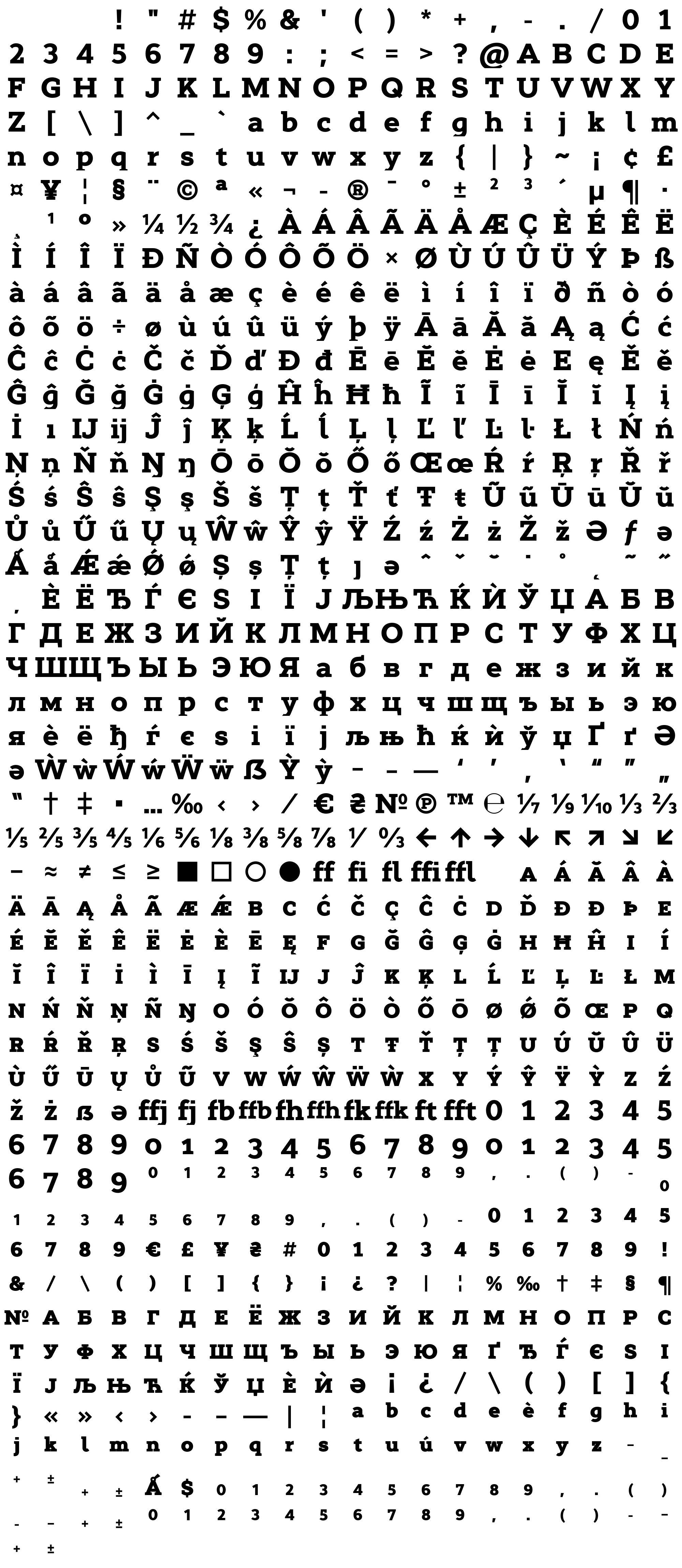 Due to the nature of thumbs' generation process, some of the glyphs in the glyph map may appear cropped.