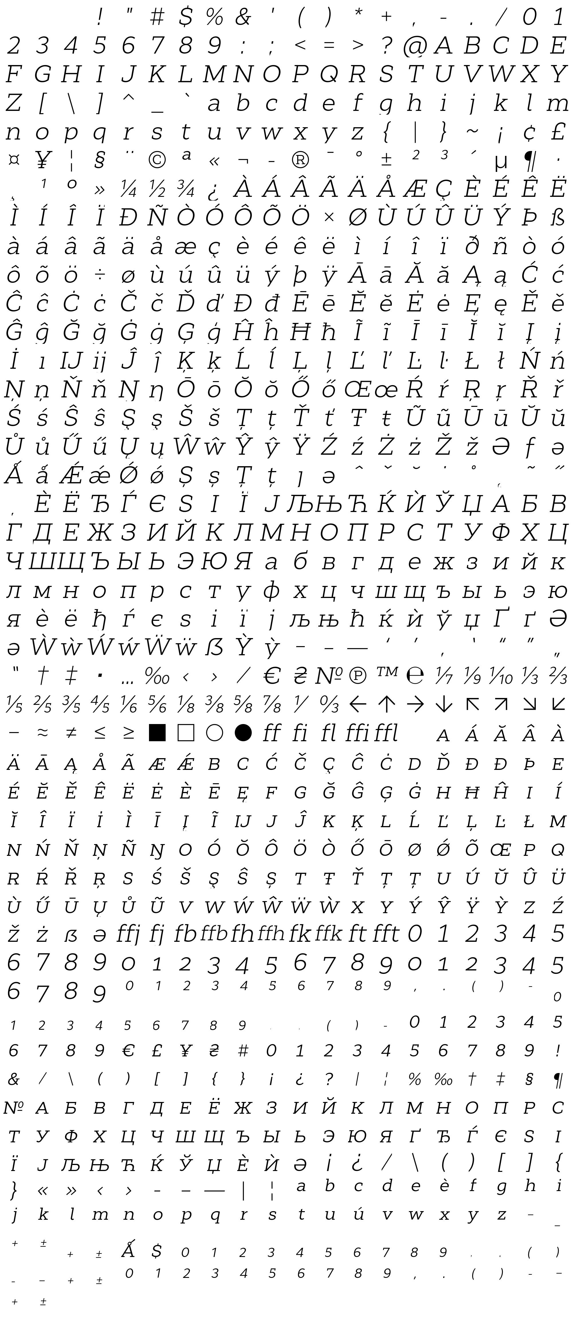 Due to the nature of thumbs' generation process, some of the glyphs in the glyph map may appear cropped.