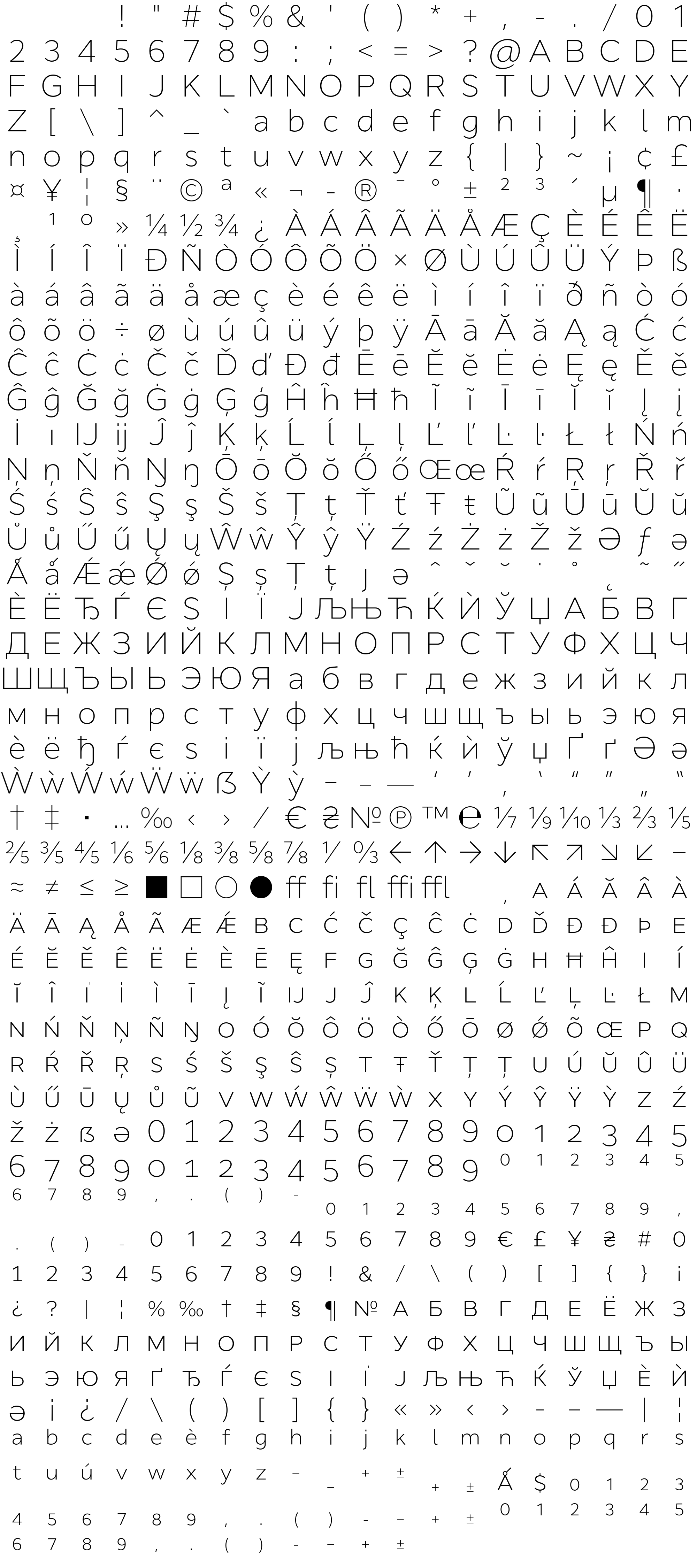 Due to the nature of thumbs' generation process, some of the glyphs in the glyph map may appear cropped.