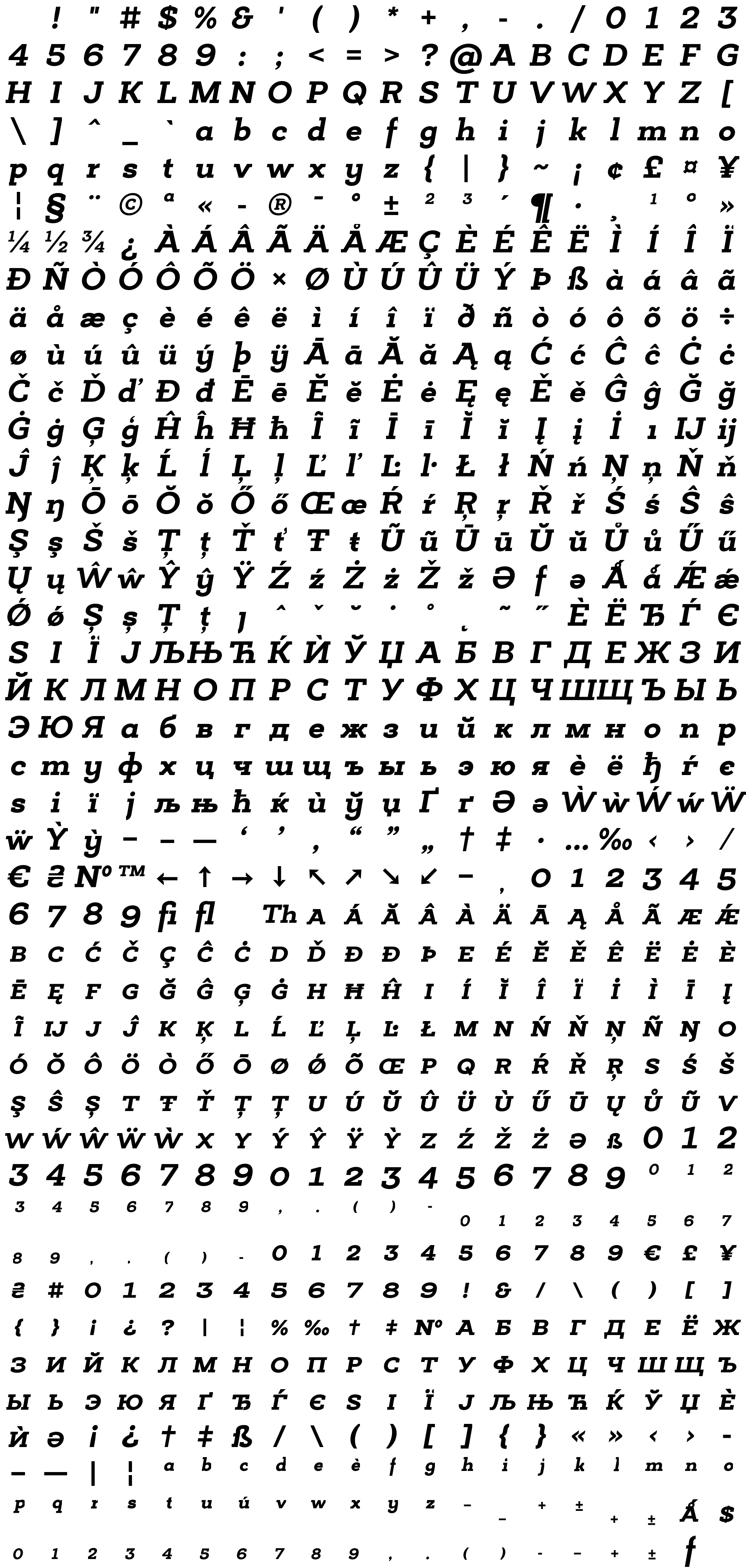 Due to the nature of thumbs' generation process, some of the glyphs in the glyph map may appear cropped.