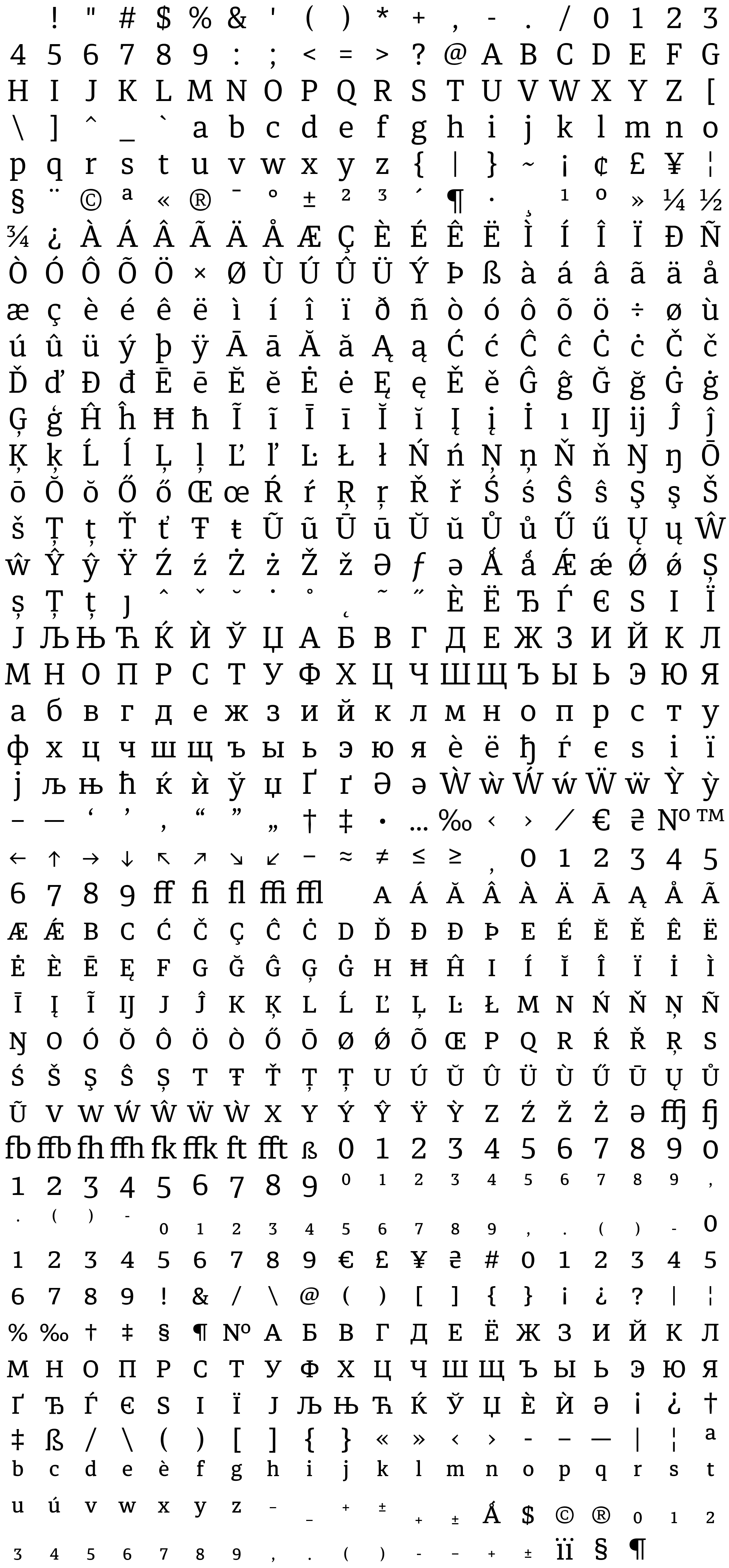 Due to the nature of thumbs' generation process, some of the glyphs in the glyph map may appear cropped.