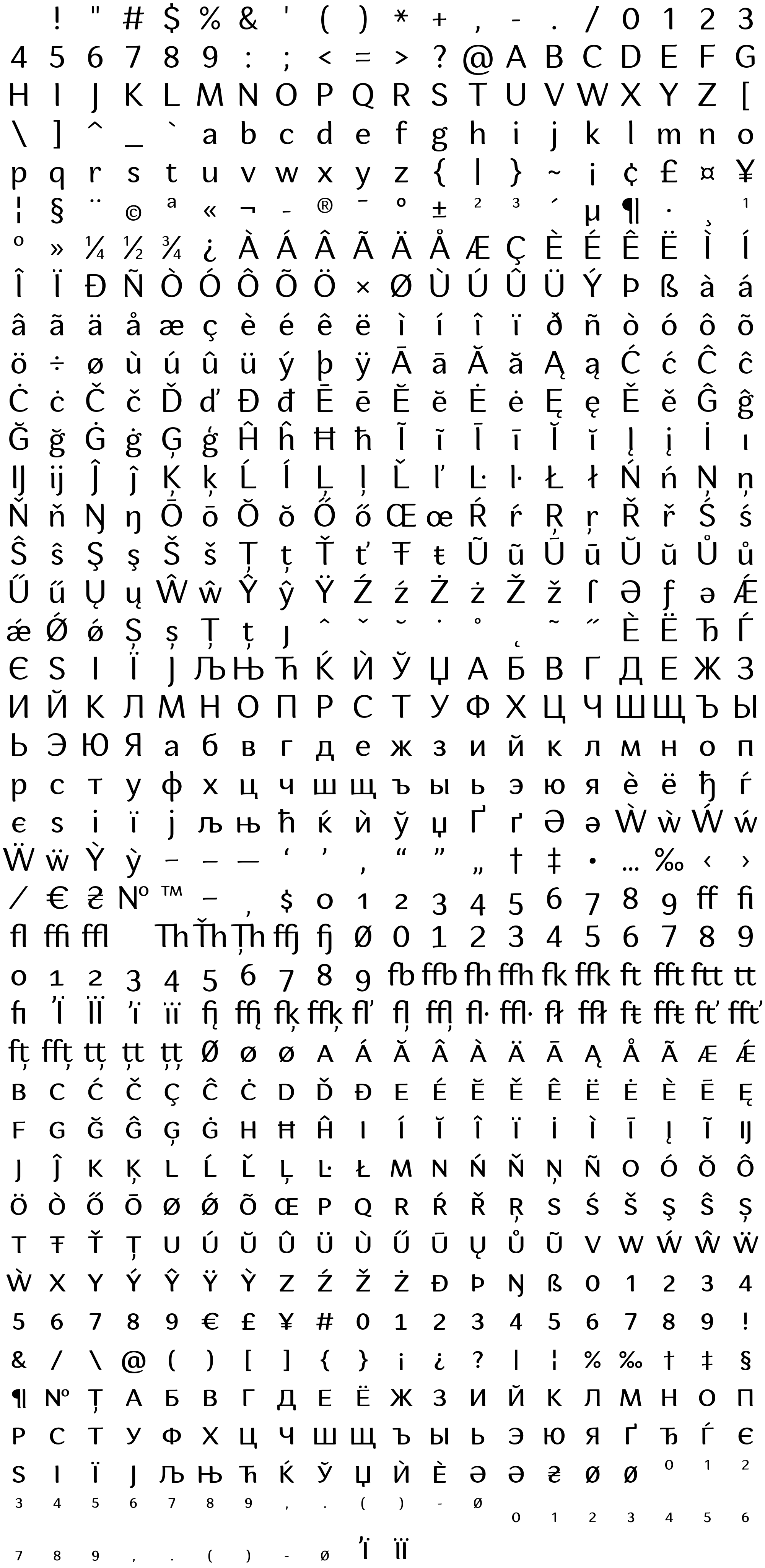 Due to the nature of thumbs' generation process, some of the glyphs in the glyph map may appear cropped.