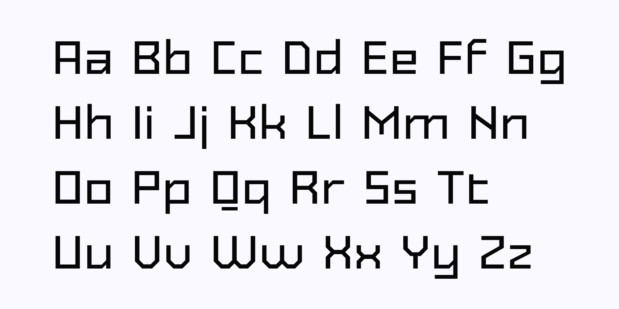 Exabyte is a modular display sans-serif prevailed by 90º angles. Its 63 plain styles consist of 7 widths and 9 weights. Each heaviest weight also comes in Outline and Engrave styles (non-layerable) in all 7 widths, bringing the overall style count to 77.