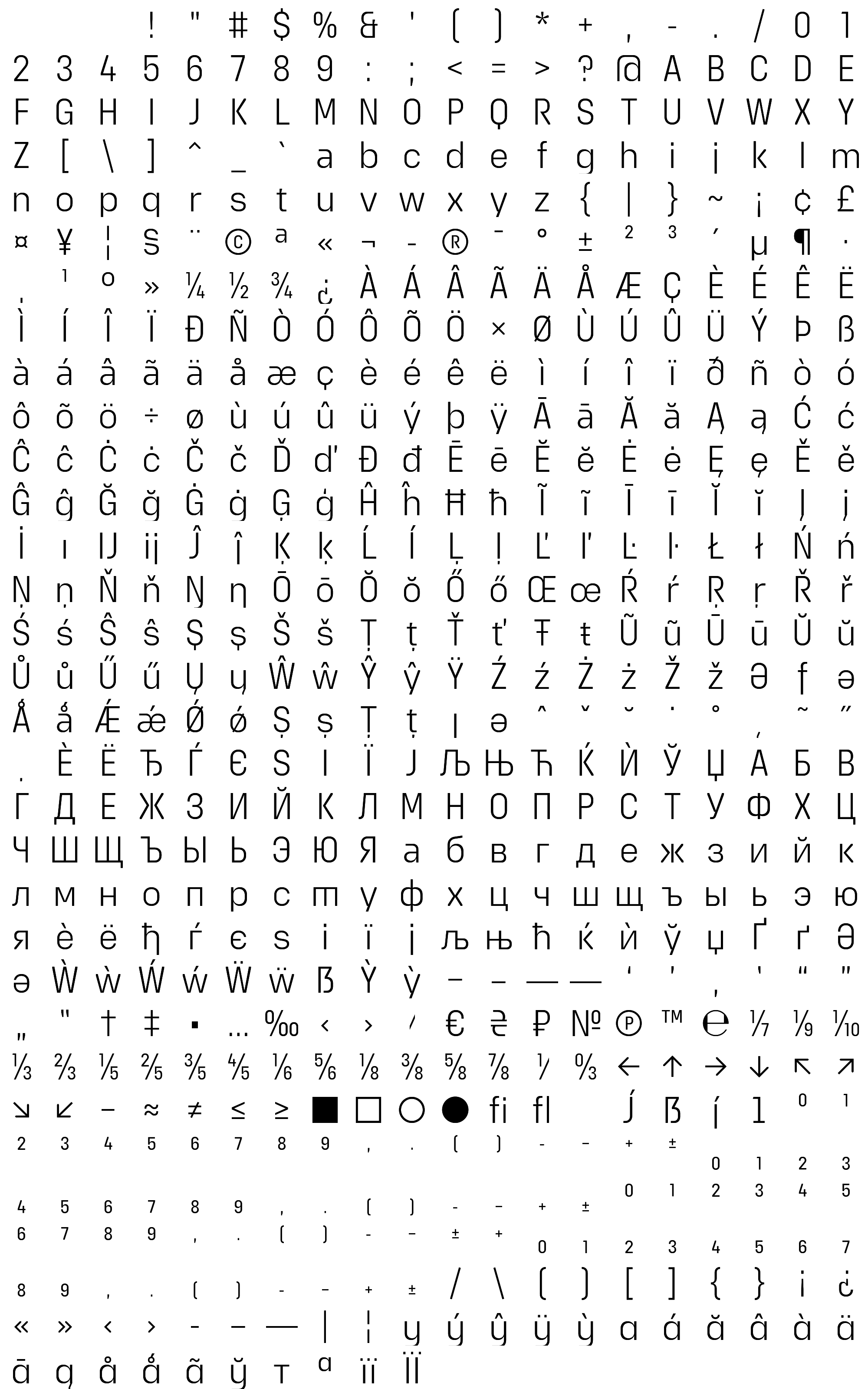 Due to the nature of thumbs' generation process, some of the glyphs in the glyph map may appear cropped.