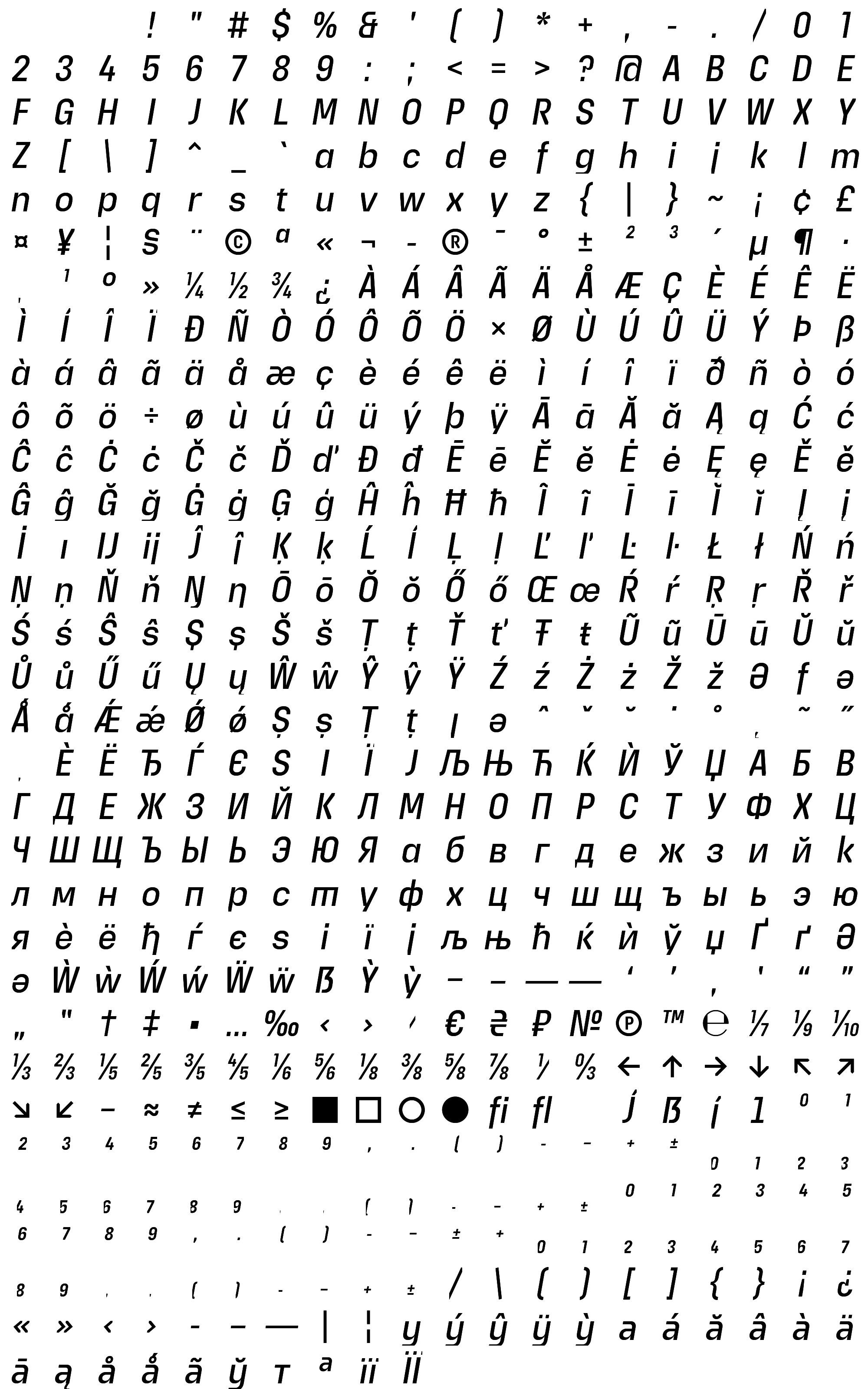 Due to the nature of thumbs' generation process, some of the glyphs in the glyph map may appear cropped.