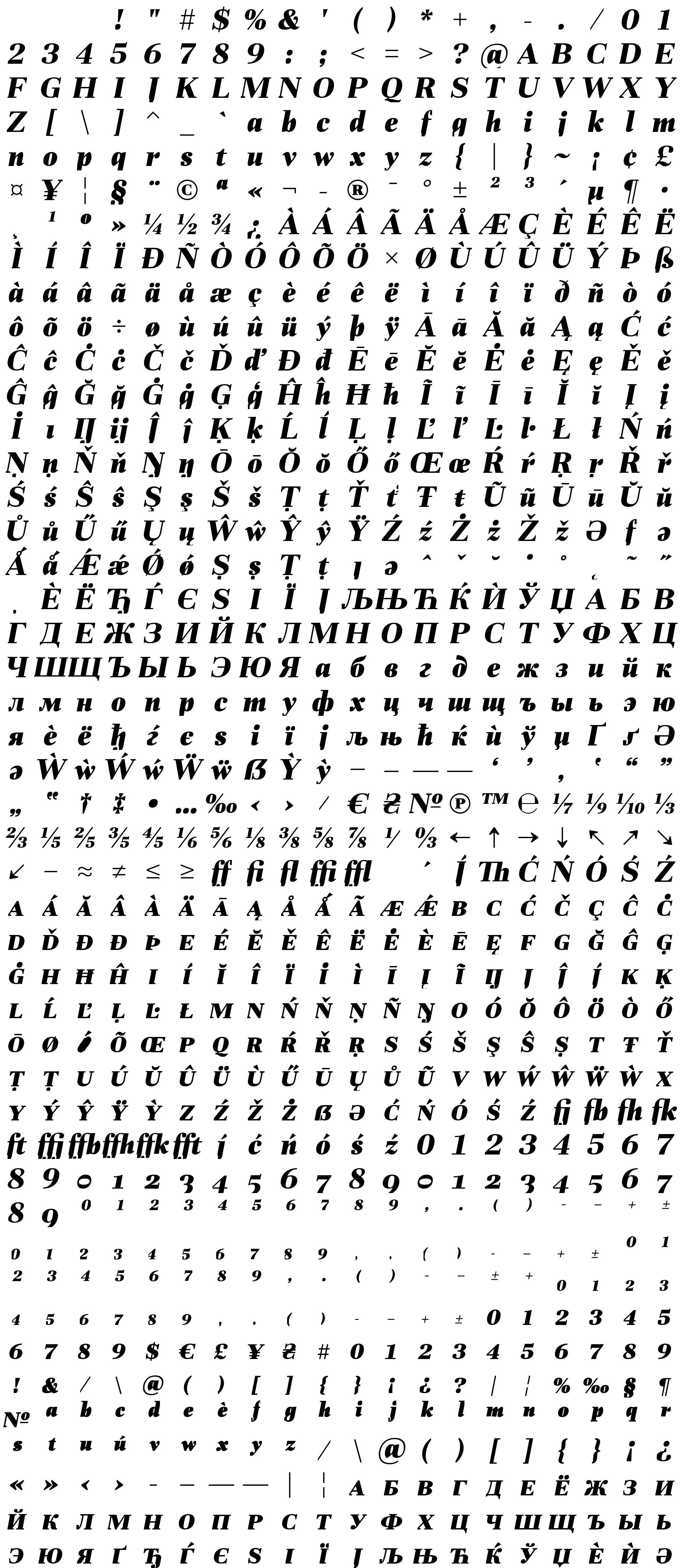 Due to the nature of thumbs' generation process, some of the glyphs in the glyph map may appear cropped.