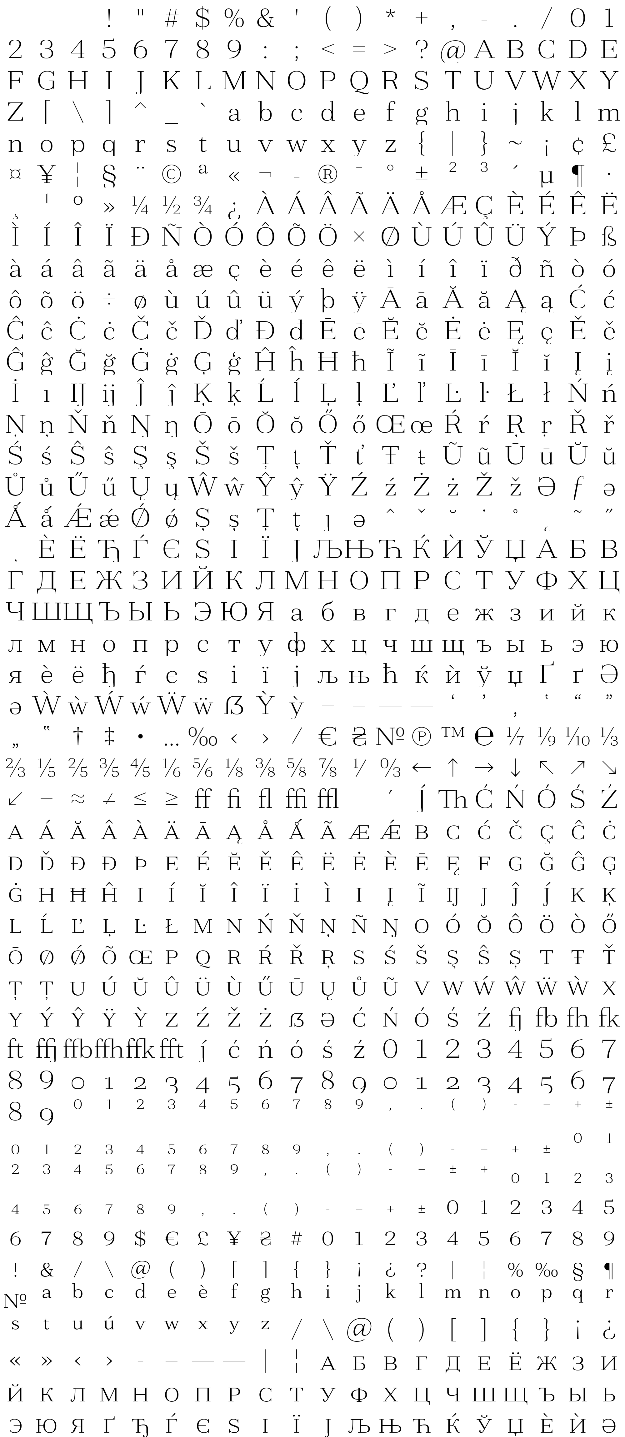 Due to the nature of thumbs' generation process, some of the glyphs in the glyph map may appear cropped.