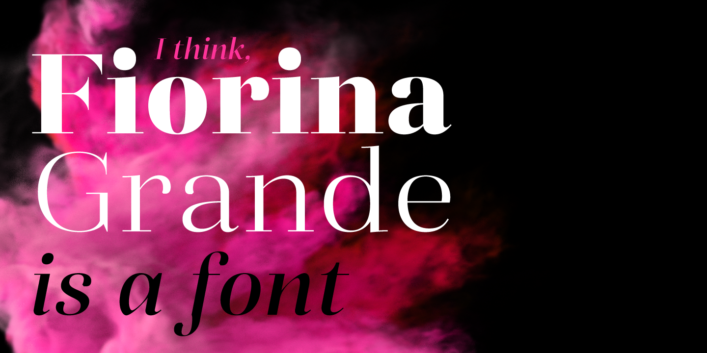 Fiorina is a modern Didone-style serif typeface of 72 fonts. It comes in 4 optical sizes, ranging from Text with moderate contrast to super-contrasted Grande,