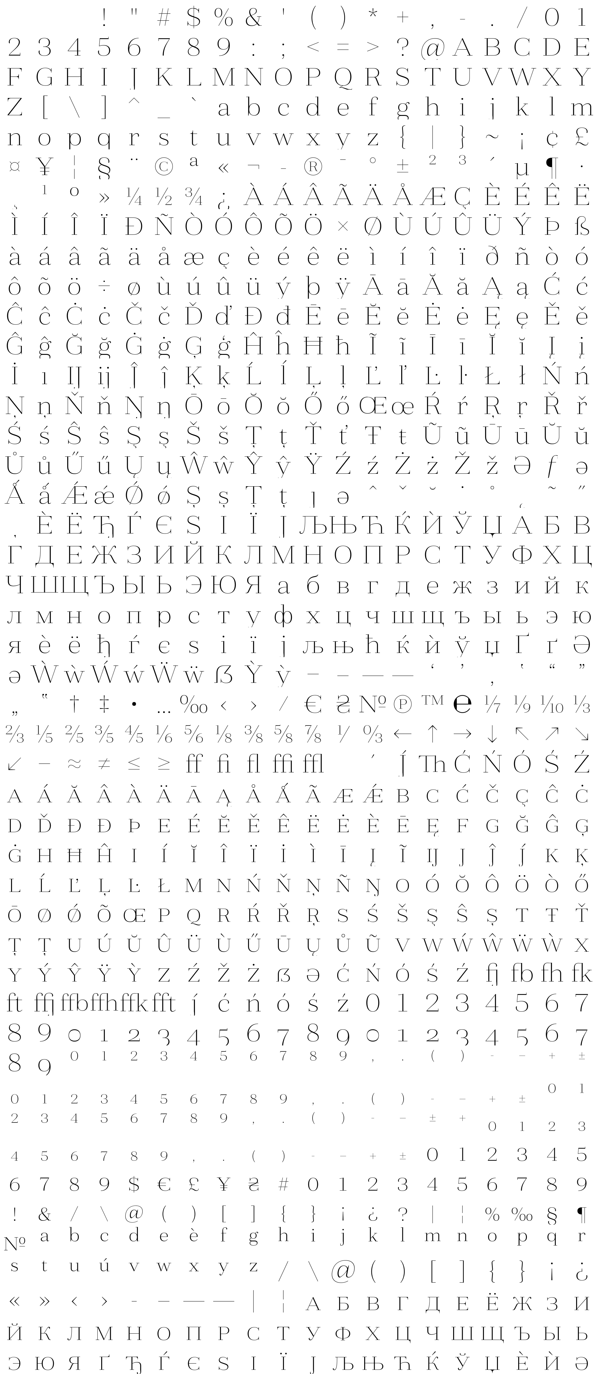 Due to the nature of thumbs' generation process, some of the glyphs in the glyph map may appear cropped.