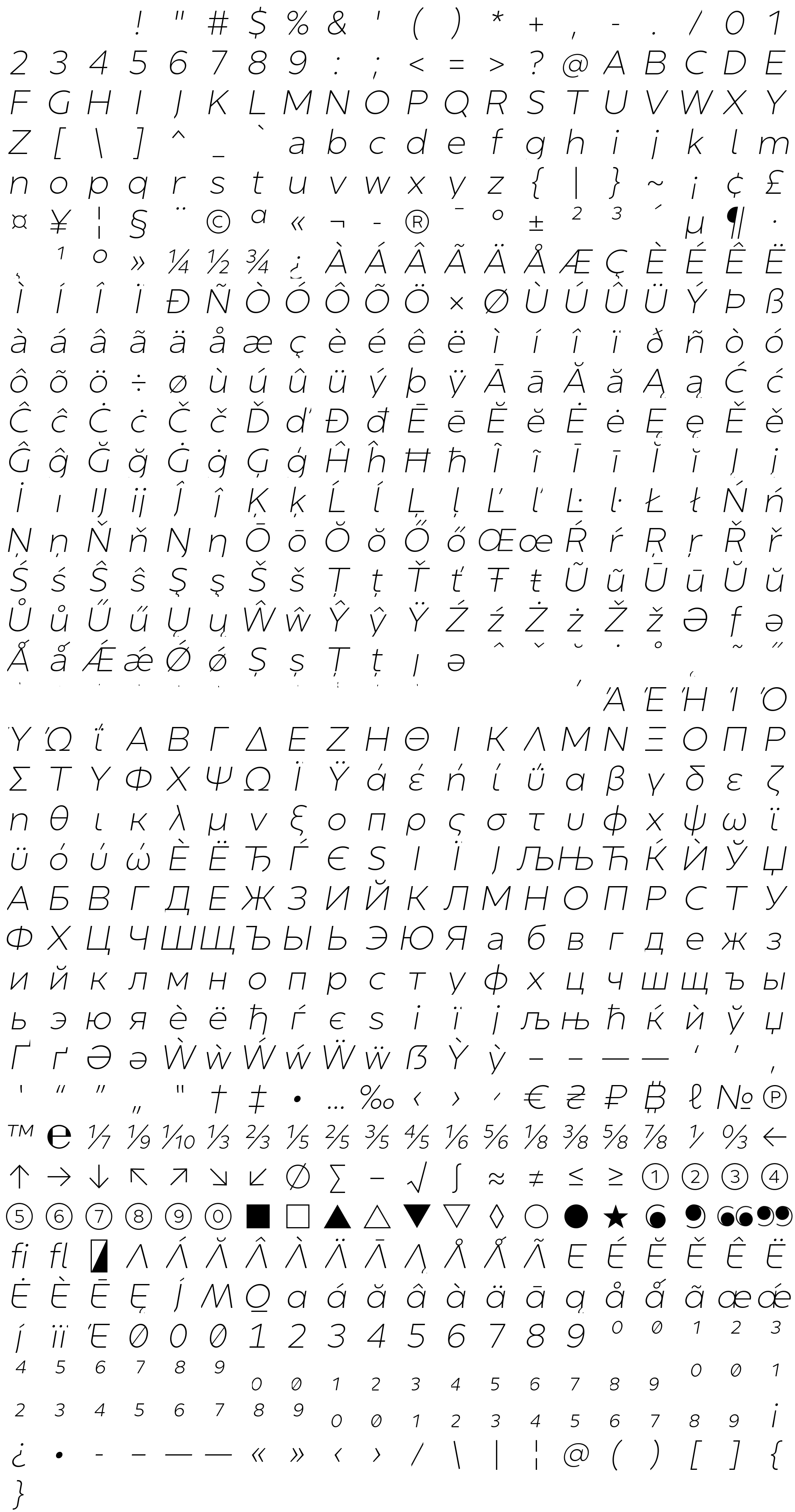 Due to the nature of thumbs' generation process, some of the glyphs in the glyph map may appear cropped.