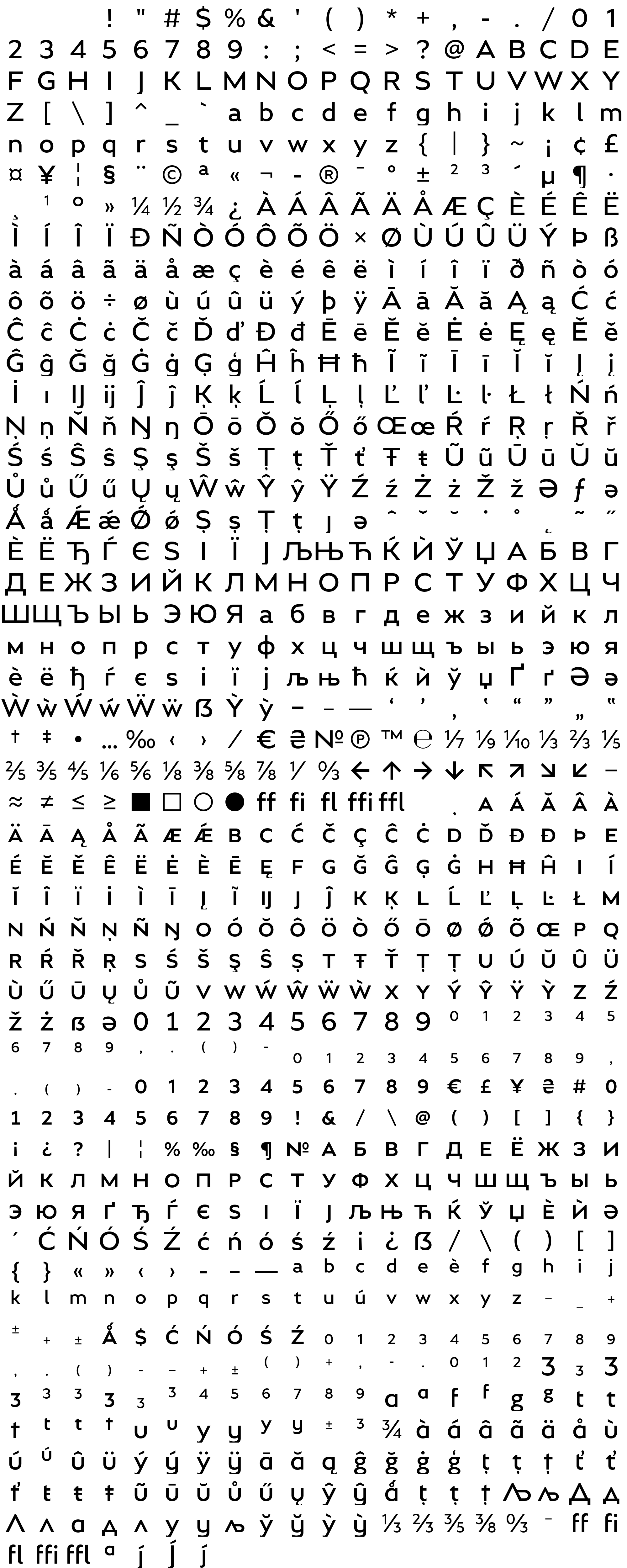 Due to the nature of thumbs' generation process, some of the glyphs in the glyph map may appear cropped.