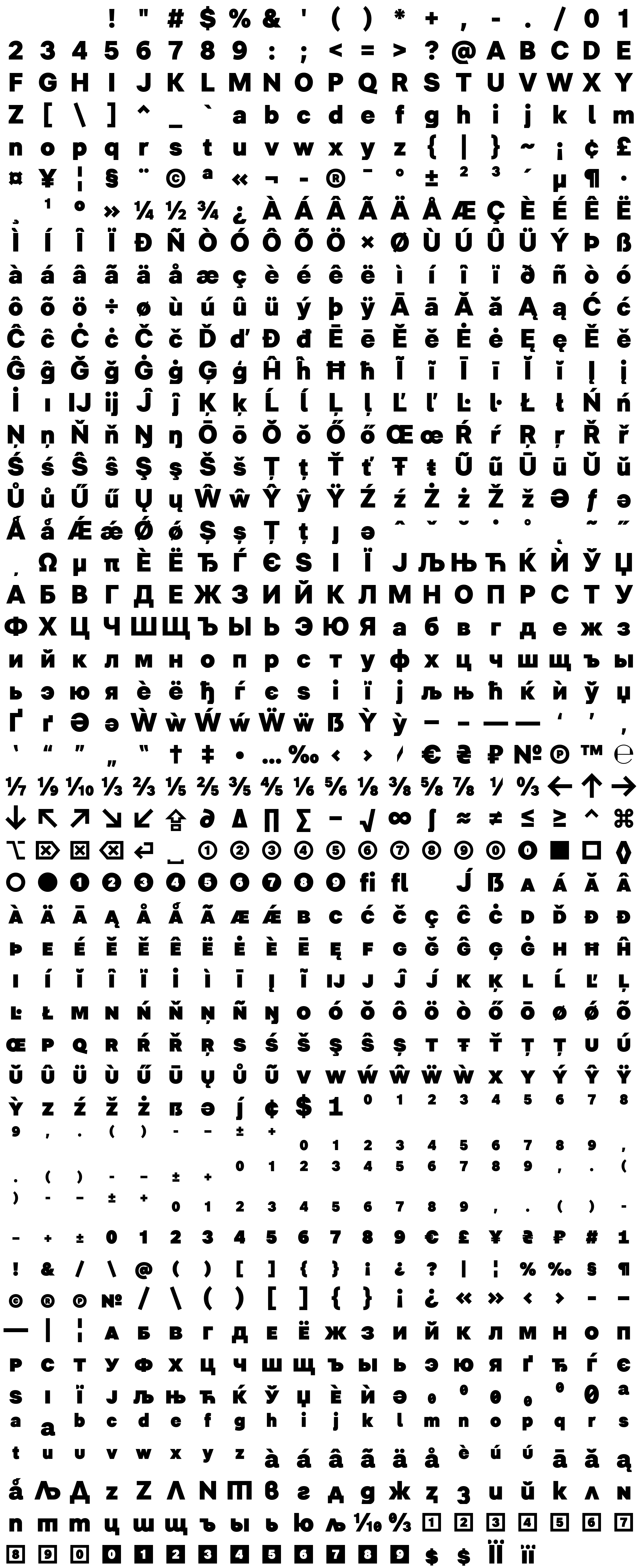 Due to the nature of thumbs' generation process, some of the glyphs in the glyph map may appear cropped.