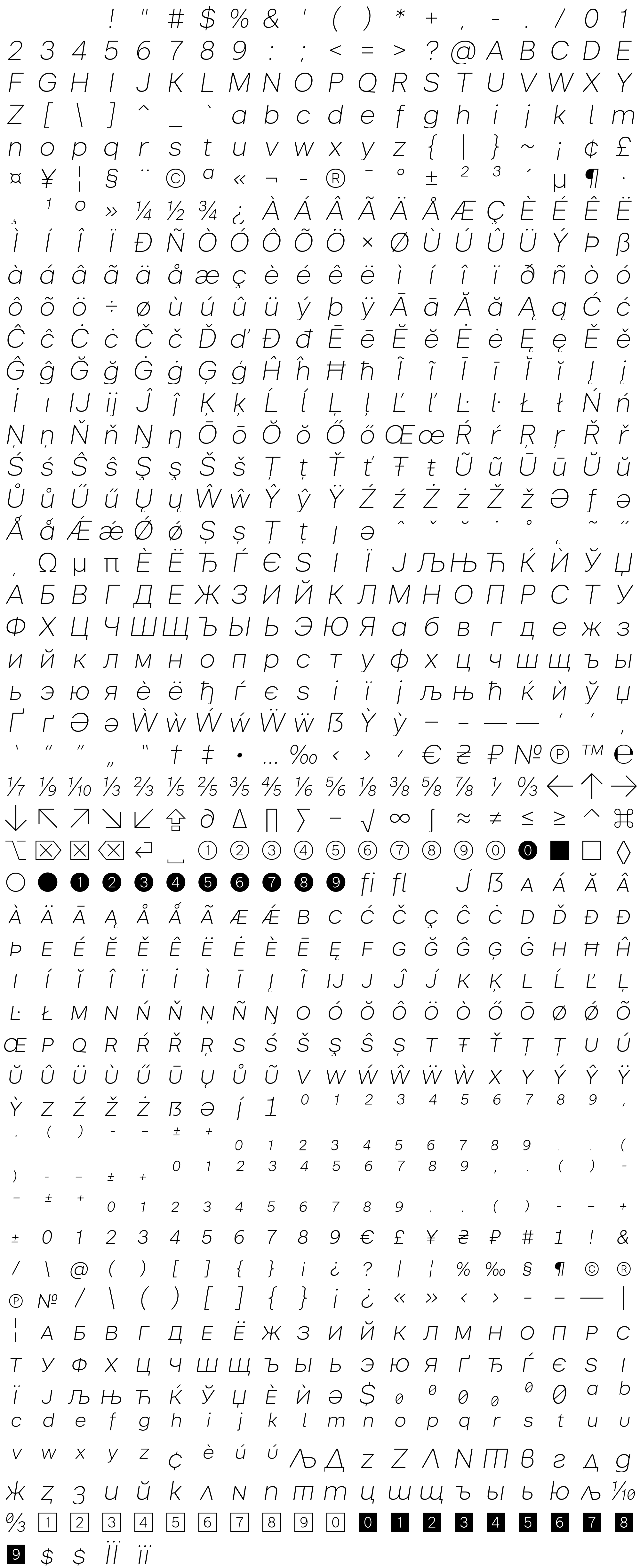 Due to the nature of thumbs' generation process, some of the glyphs in the glyph map may appear cropped.