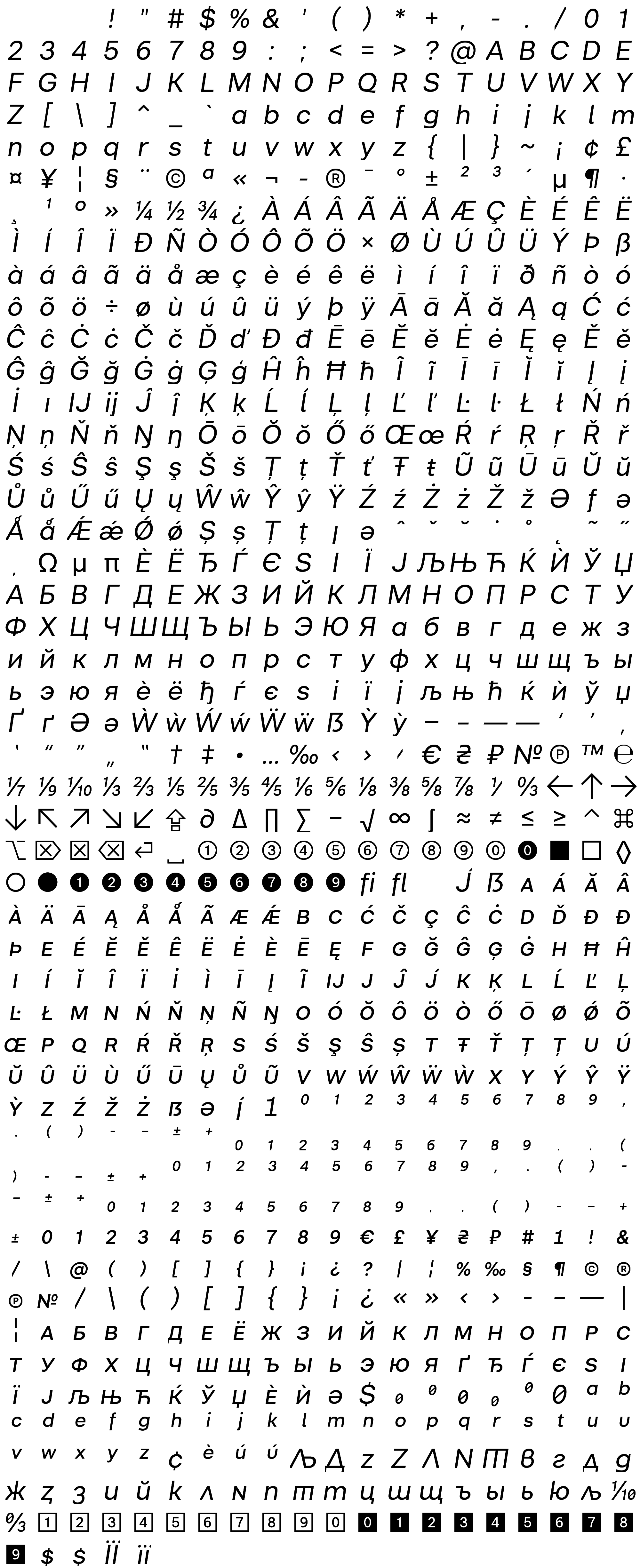 Due to the nature of thumbs' generation process, some of the glyphs in the glyph map may appear cropped.