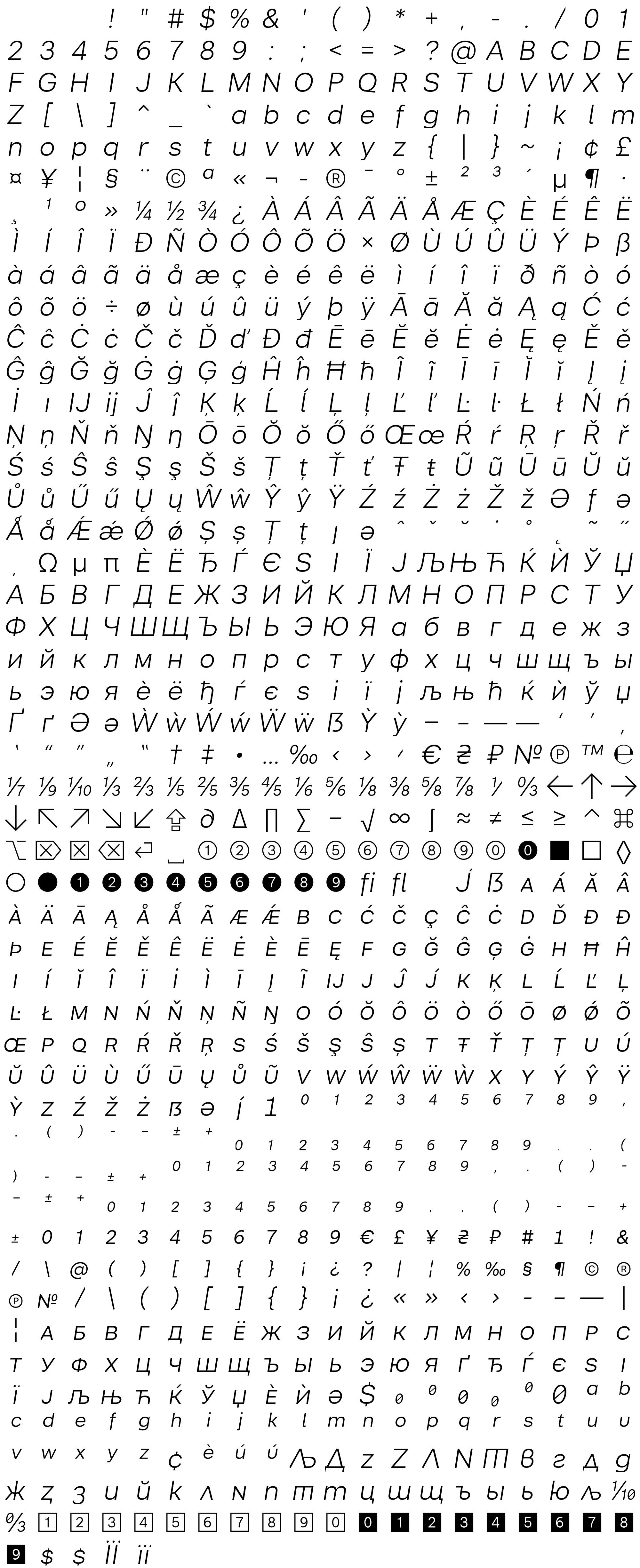 Due to the nature of thumbs' generation process, some of the glyphs in the glyph map may appear cropped.