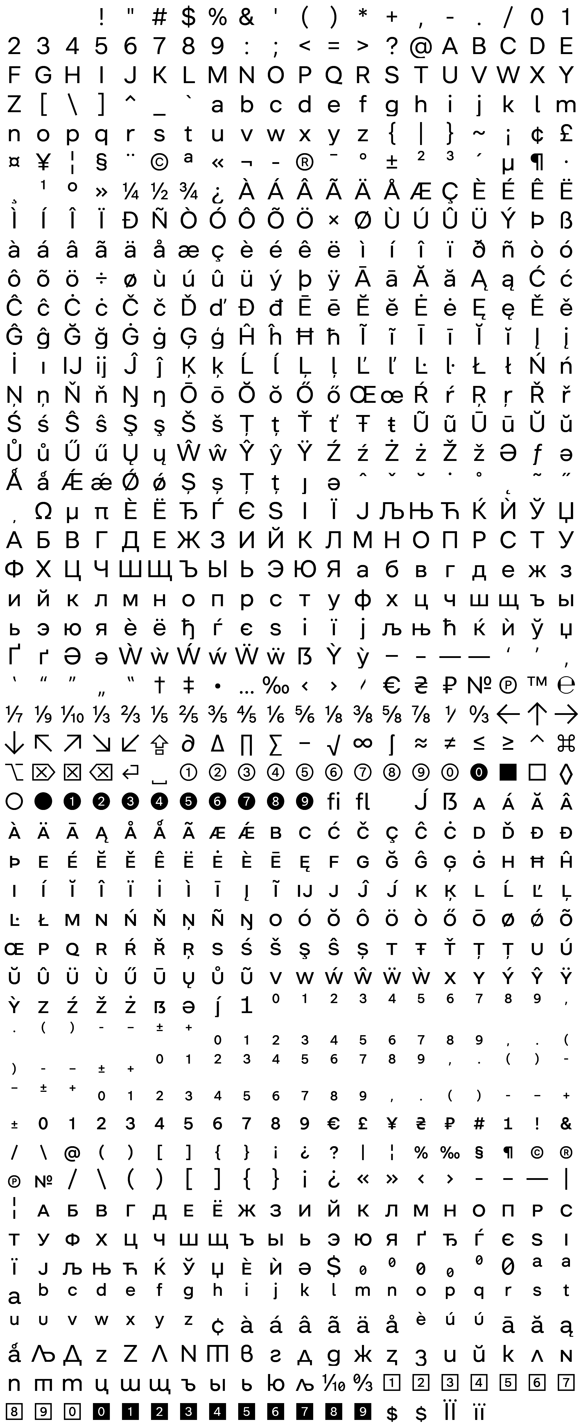 Due to the nature of thumbs' generation process, some of the glyphs in the glyph map may appear cropped.