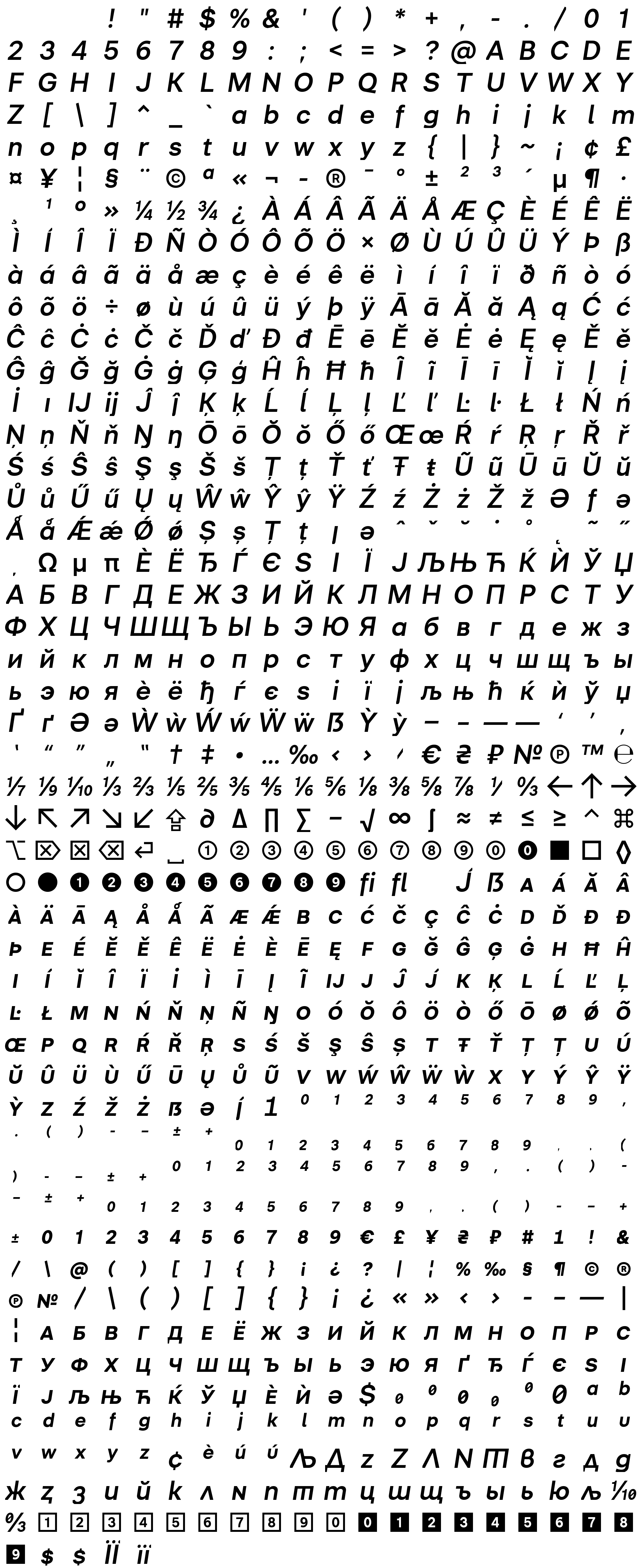 Due to the nature of thumbs' generation process, some of the glyphs in the glyph map may appear cropped.