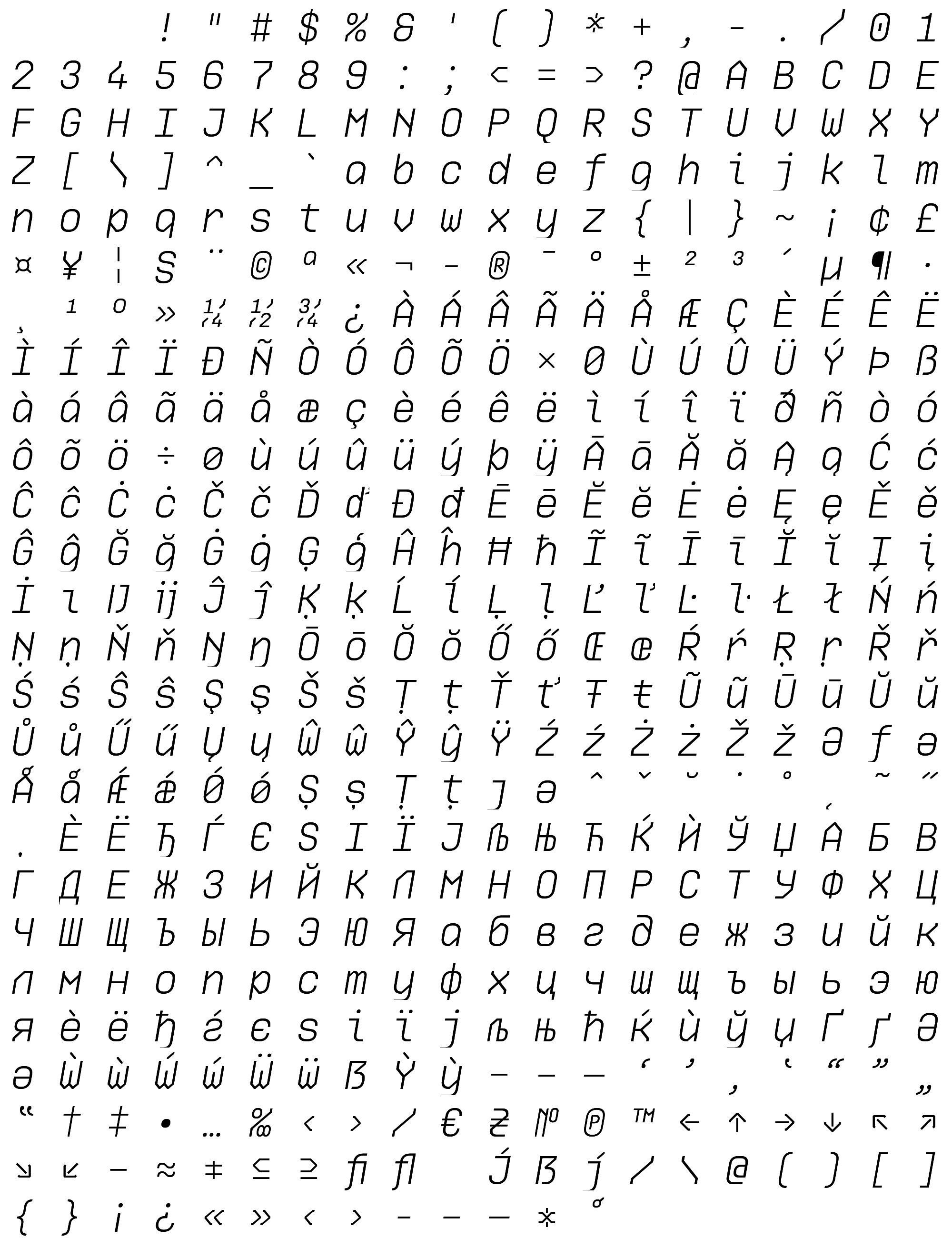 Due to the nature of thumbs' generation process, some of the glyphs in the glyph map may appear cropped.