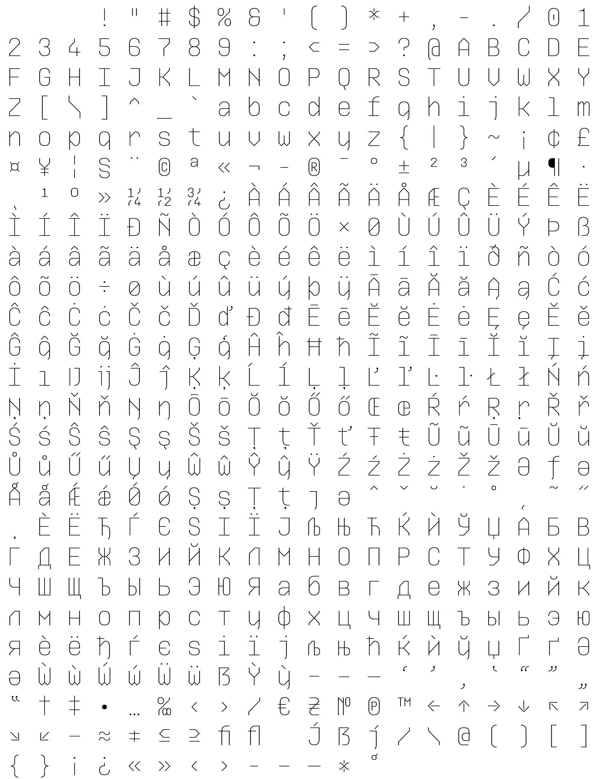 Due to the nature of thumbs' generation process, some of the glyphs in the glyph map may appear cropped.
