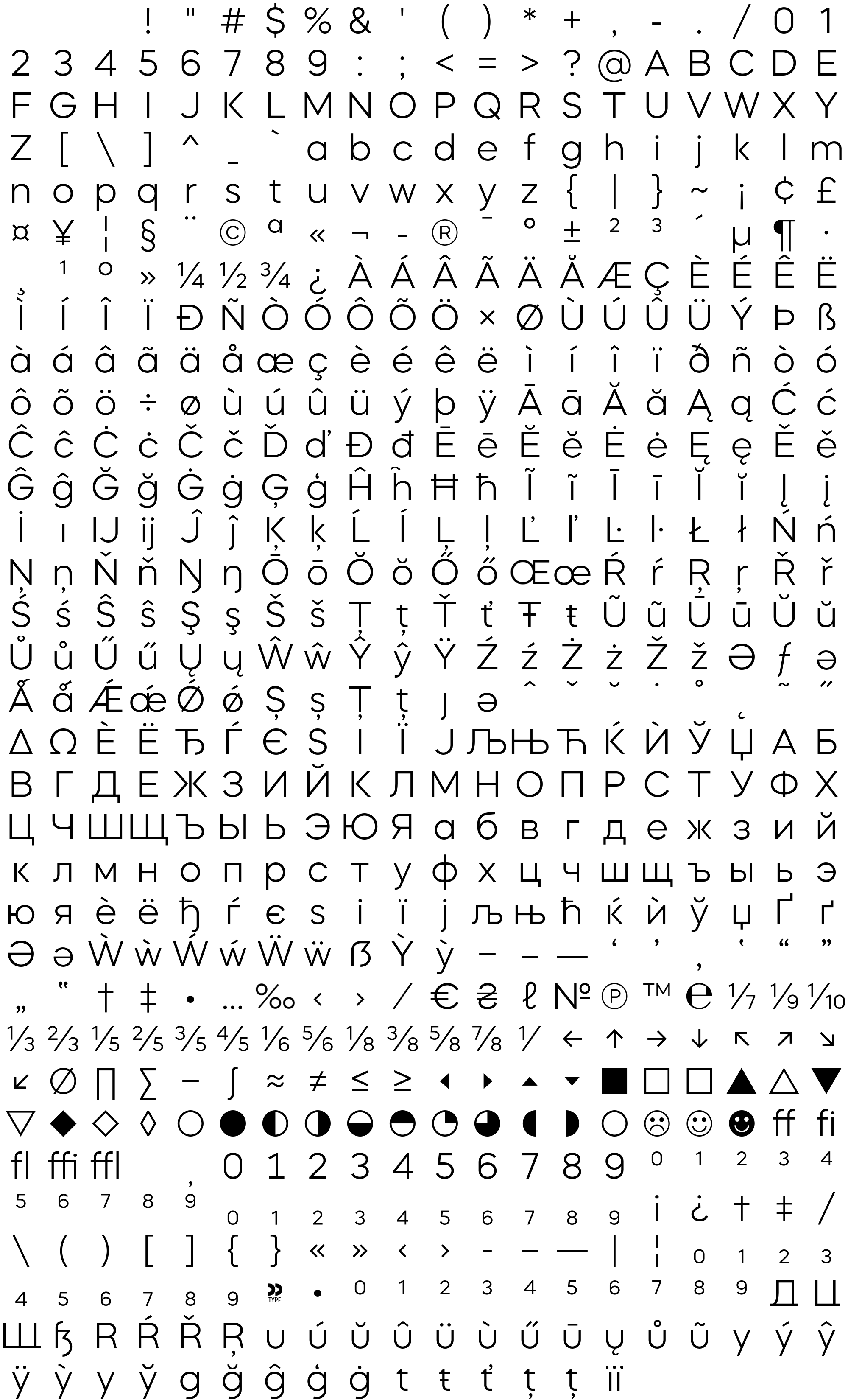 Due to the nature of thumbs' generation process, some of the glyphs in the glyph map may appear cropped.