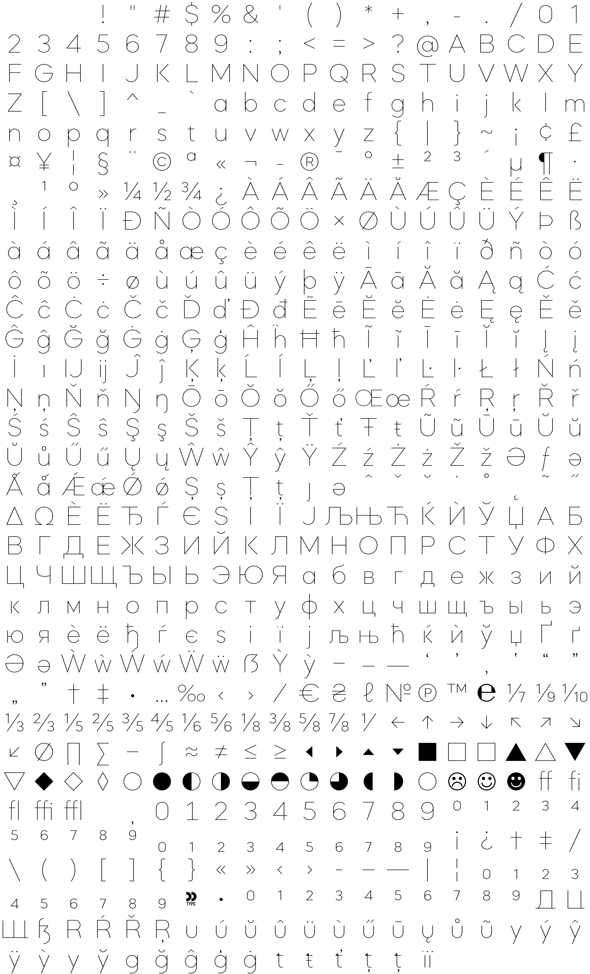 Due to the nature of thumbs' generation process, some of the glyphs in the glyph map may appear cropped.