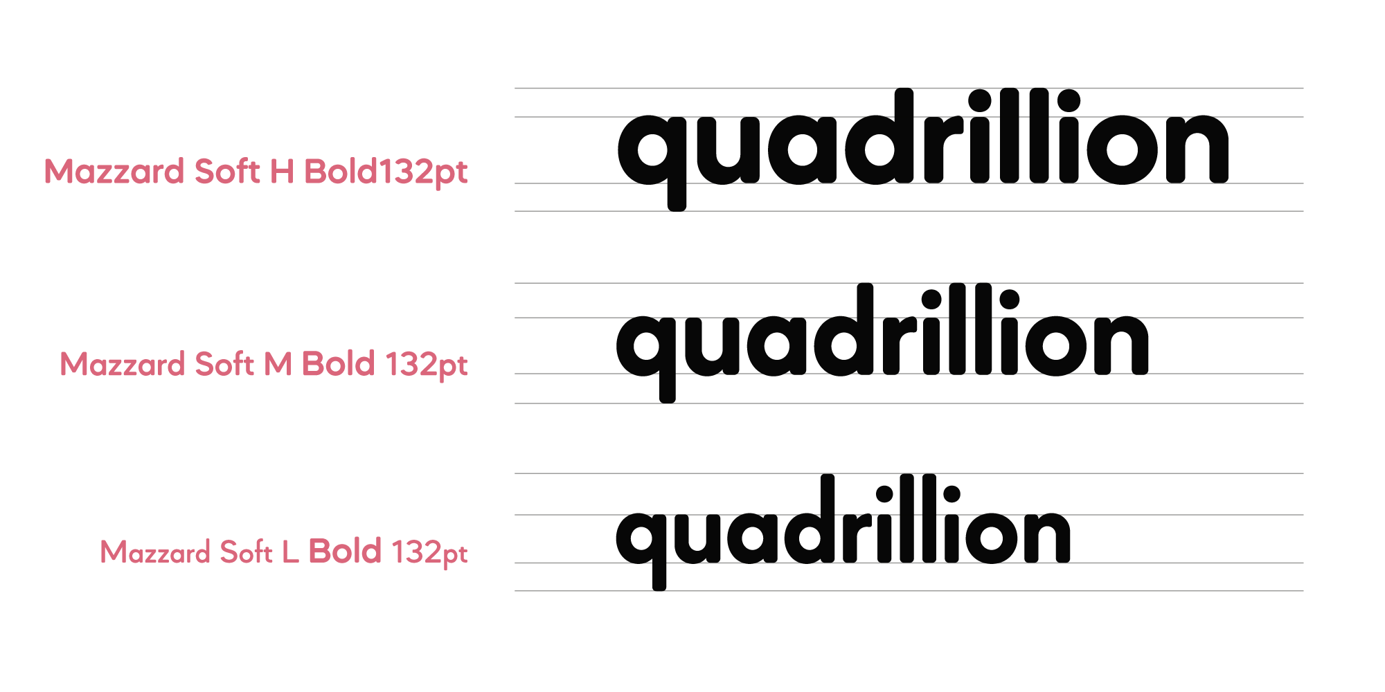 Mazzard Soft is a rounded version of Mazzard – a superfamily of three geometric grotesques with three different x-heights (H, M, and L).
