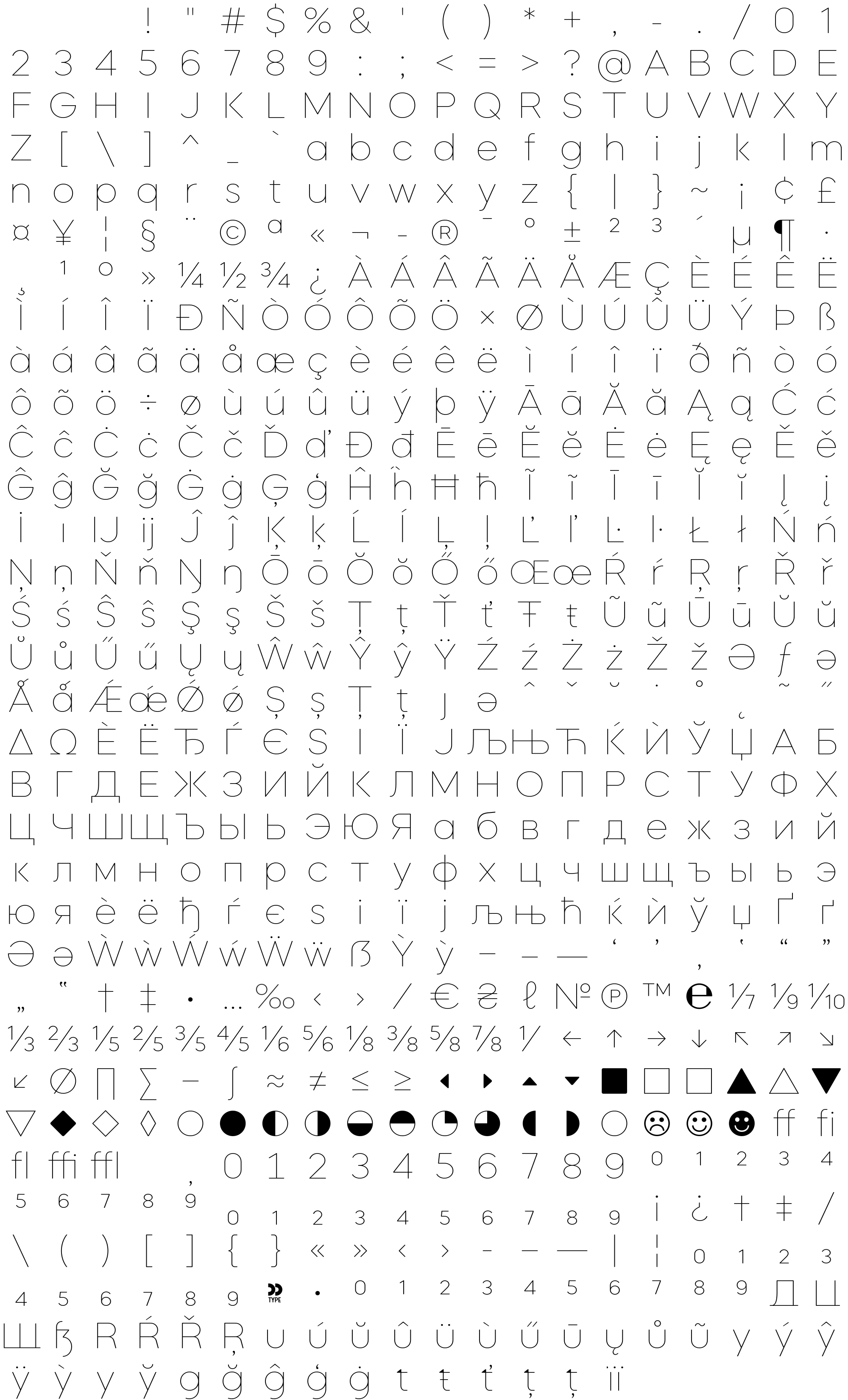 Due to the nature of thumbs' generation process, some of the glyphs in the glyph map may appear cropped.
