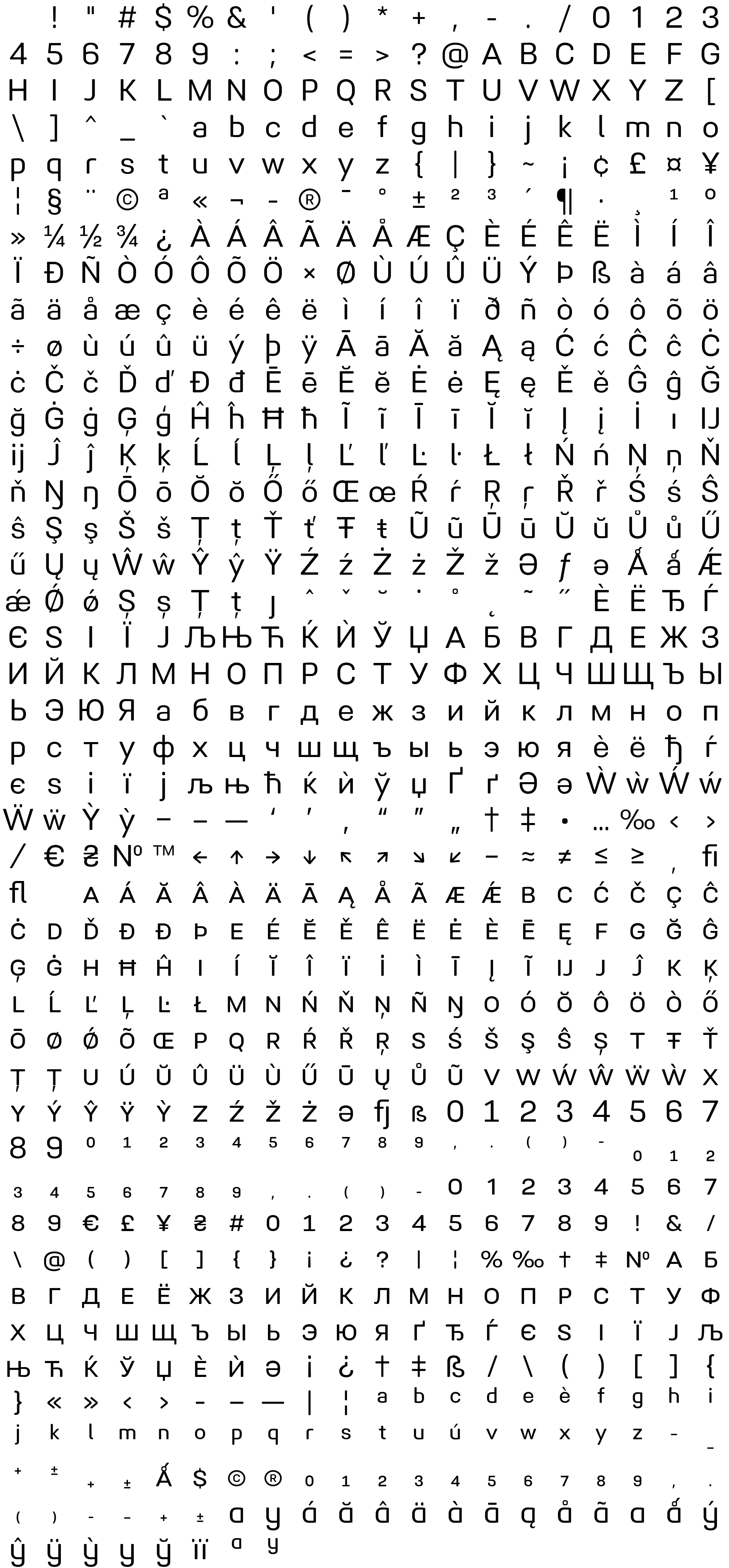 Due to the nature of thumbs' generation process, some of the glyphs in the glyph map may appear cropped.