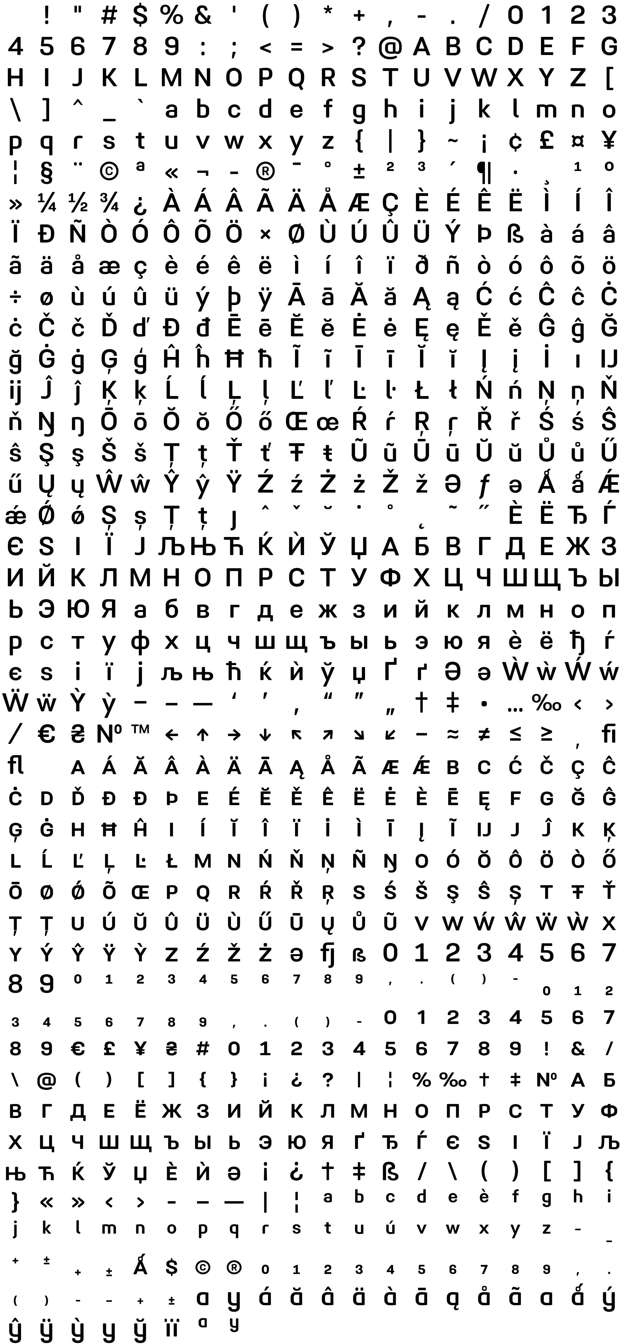 Due to the nature of thumbs' generation process, some of the glyphs in the glyph map may appear cropped.