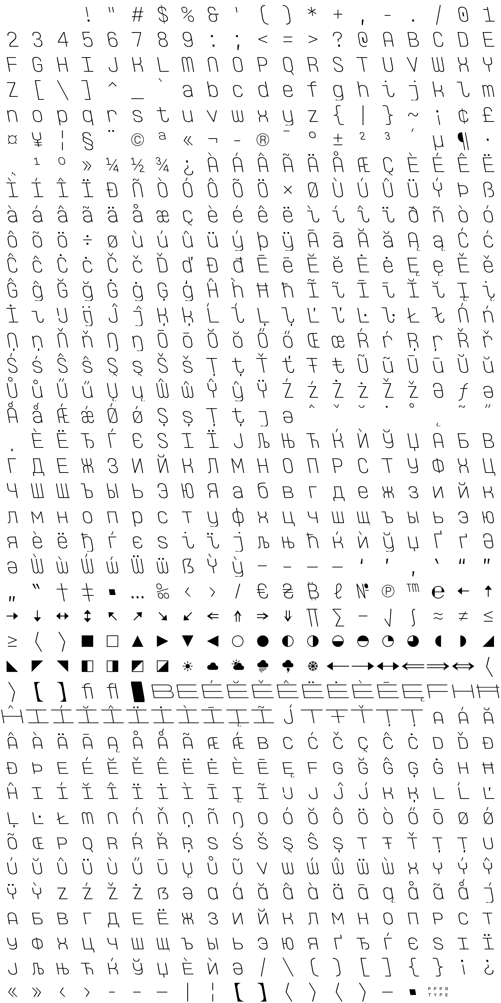 Due to the nature of thumbs' generation process, some of the glyphs in the glyph map may appear cropped.