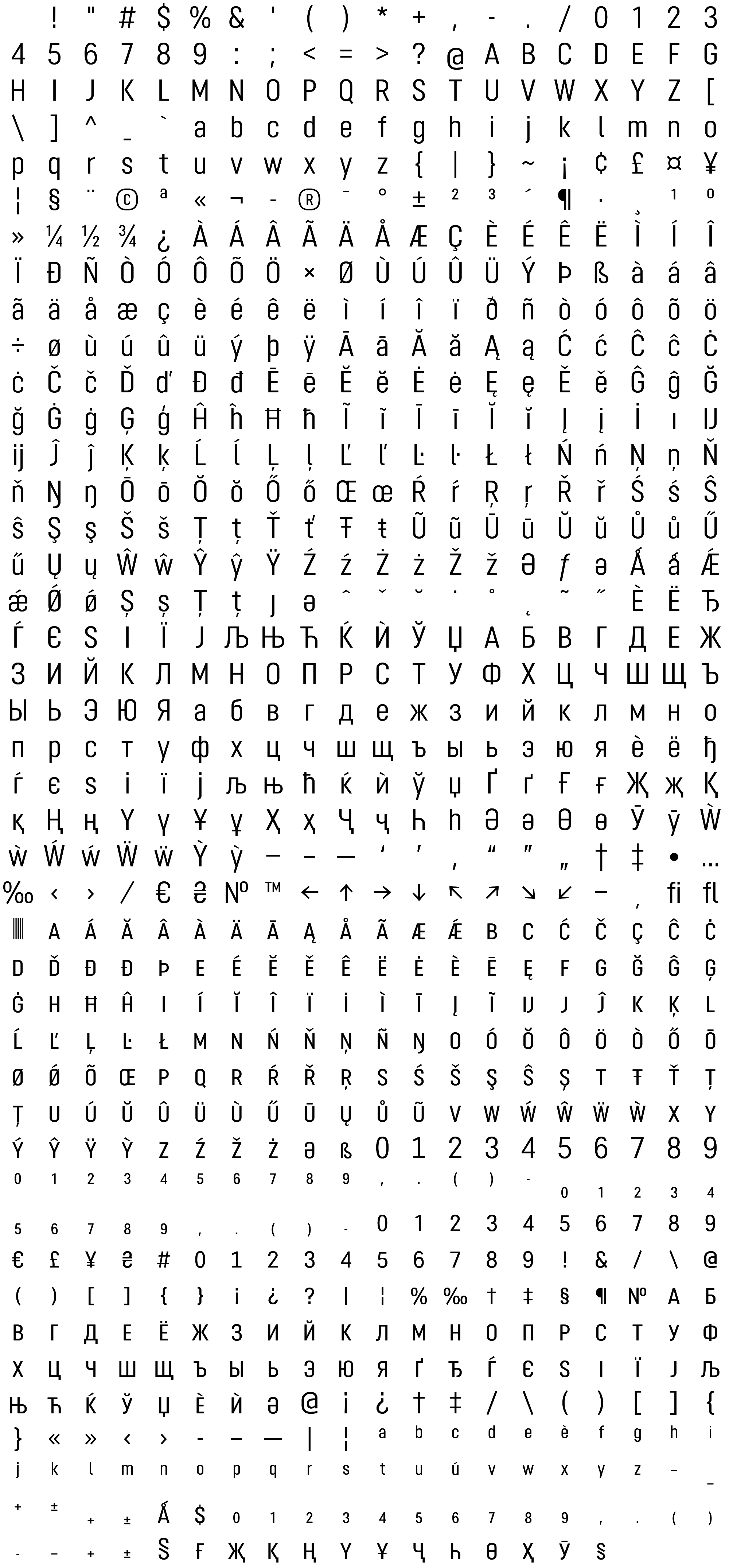 Due to the nature of thumbs' generation process, some of the glyphs in the glyph map may appear cropped.