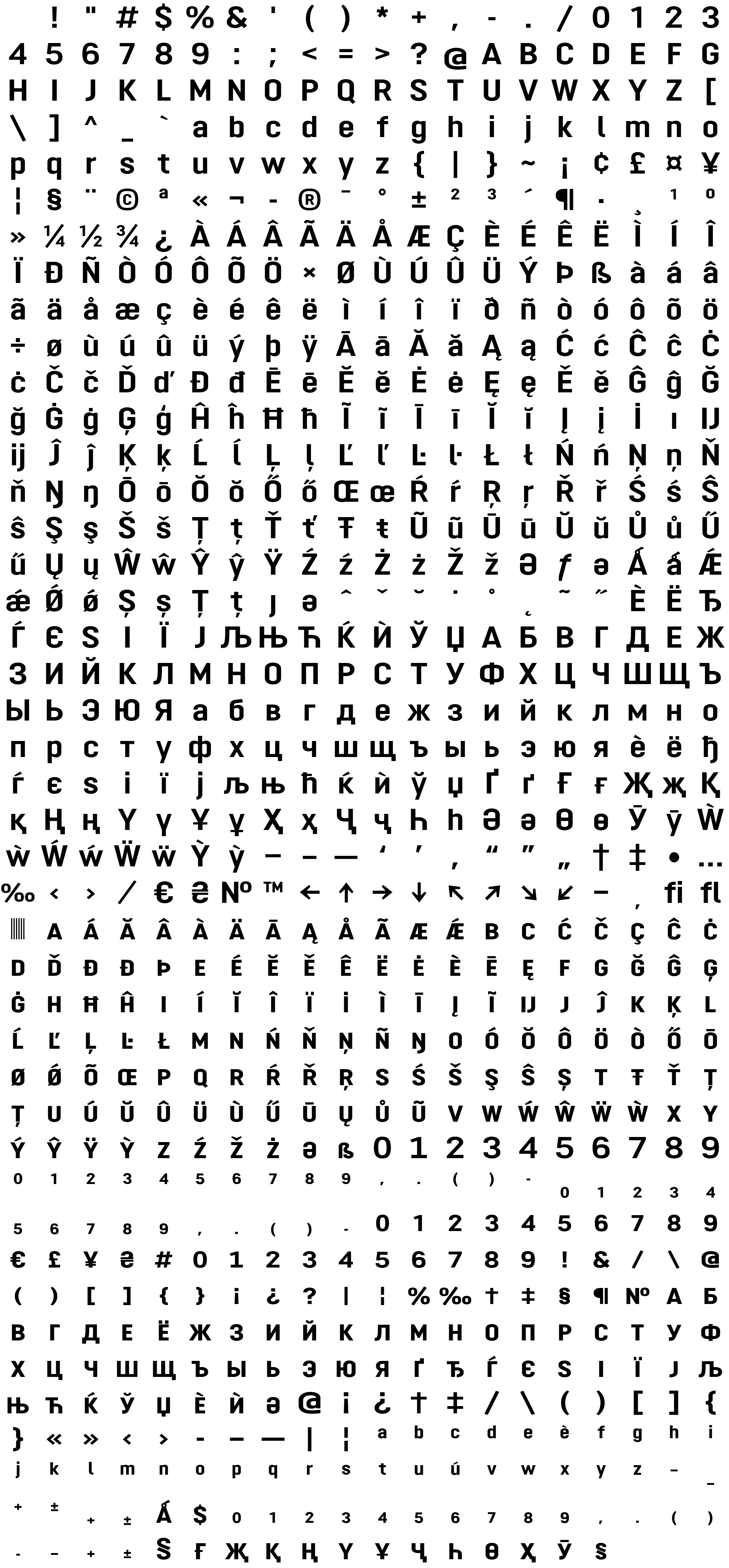 Due to the nature of thumbs' generation process, some of the glyphs in the glyph map may appear cropped.