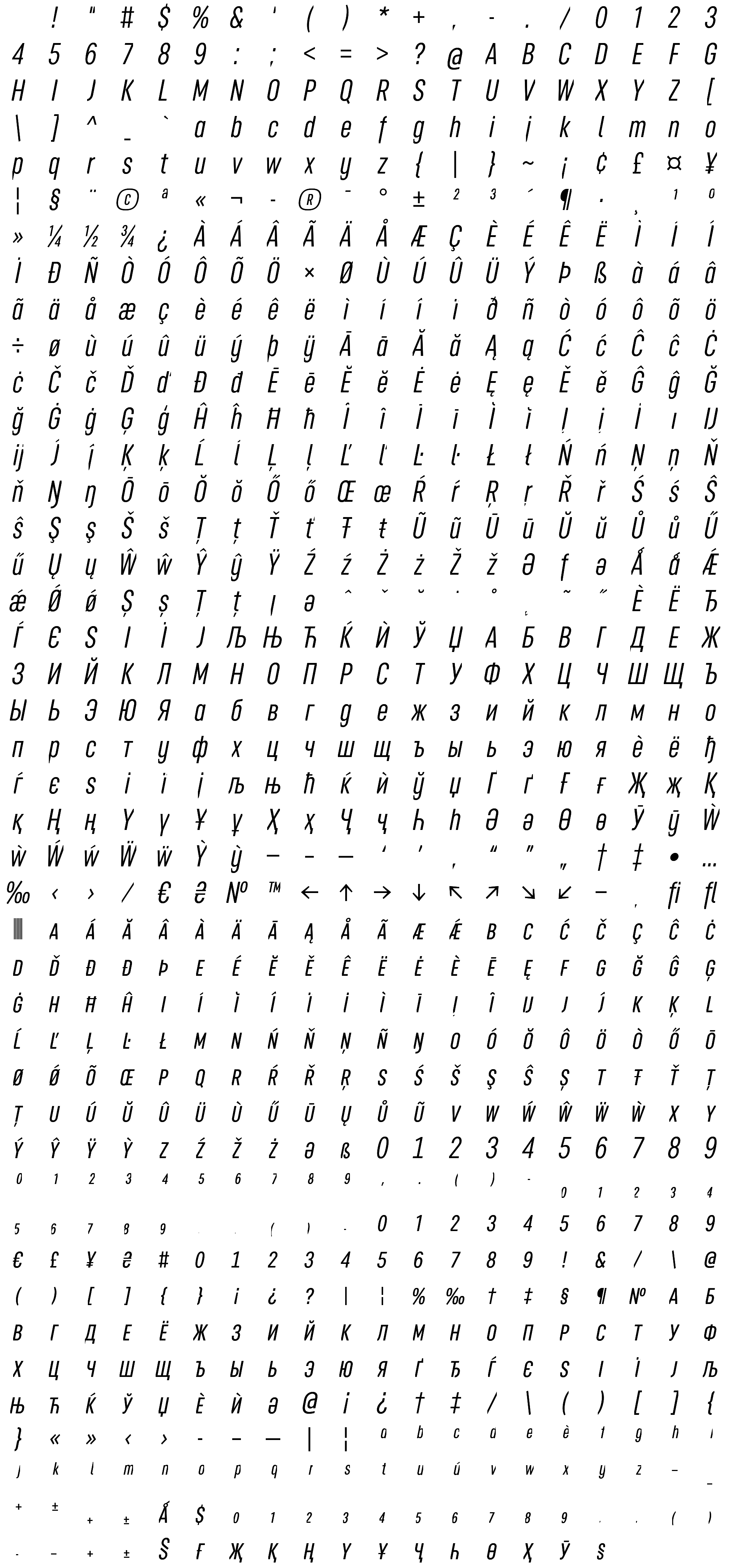 Due to the nature of thumbs' generation process, some of the glyphs in the glyph map may appear cropped.