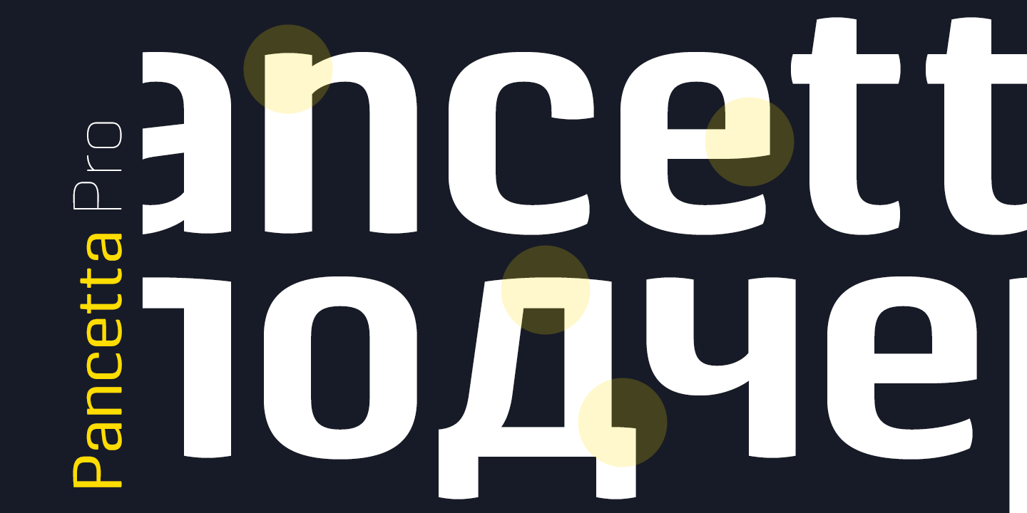 Pancetta Pro is a squarish sans-serif typeface with semi-closed aperture and pillow-shaped terminals.