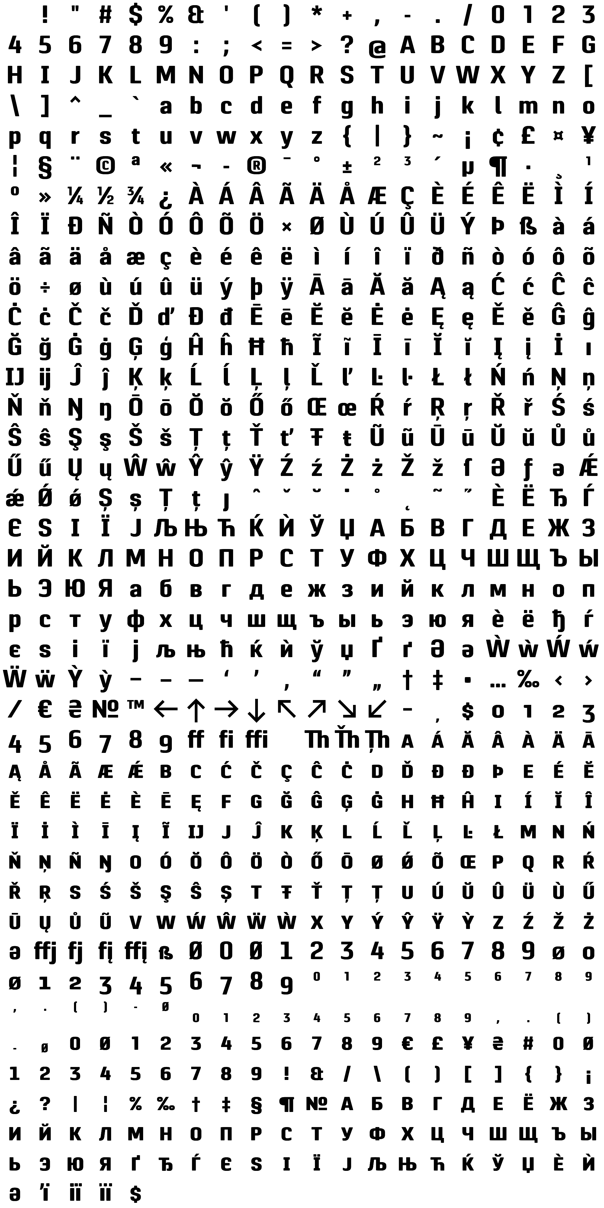 Due to the nature of thumbs' generation process, some of the glyphs in the glyph map may appear cropped.